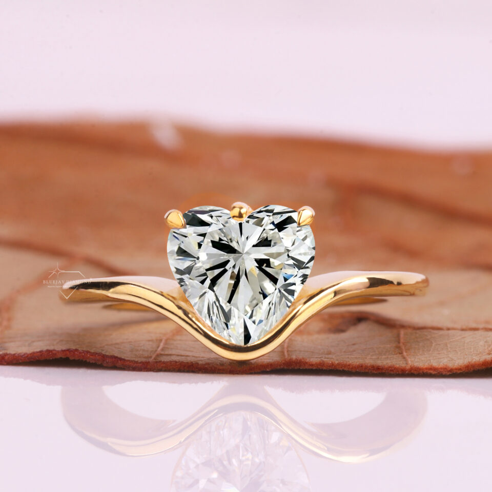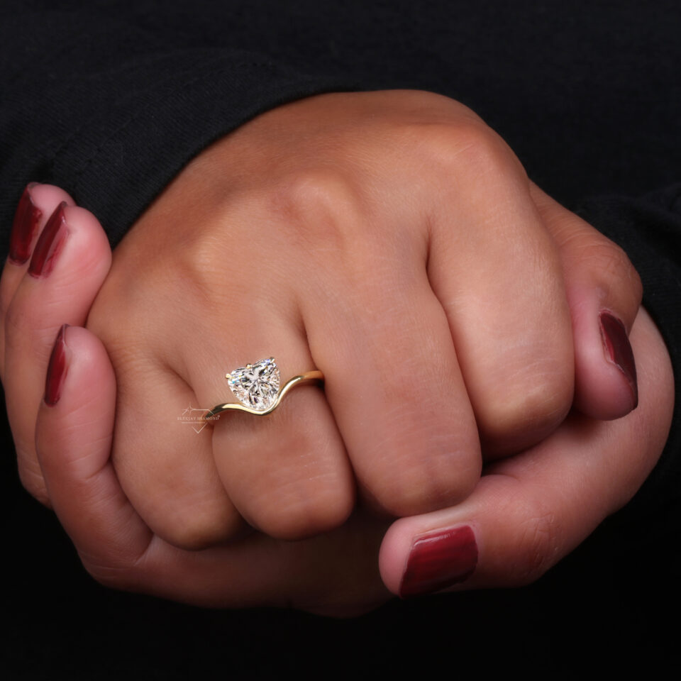 Heart-Cut Diamond Solitaire Ring in Yellow Gold Wave Design