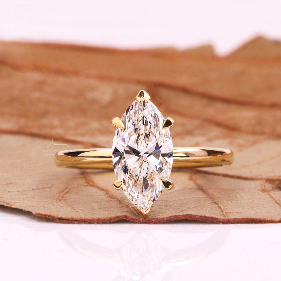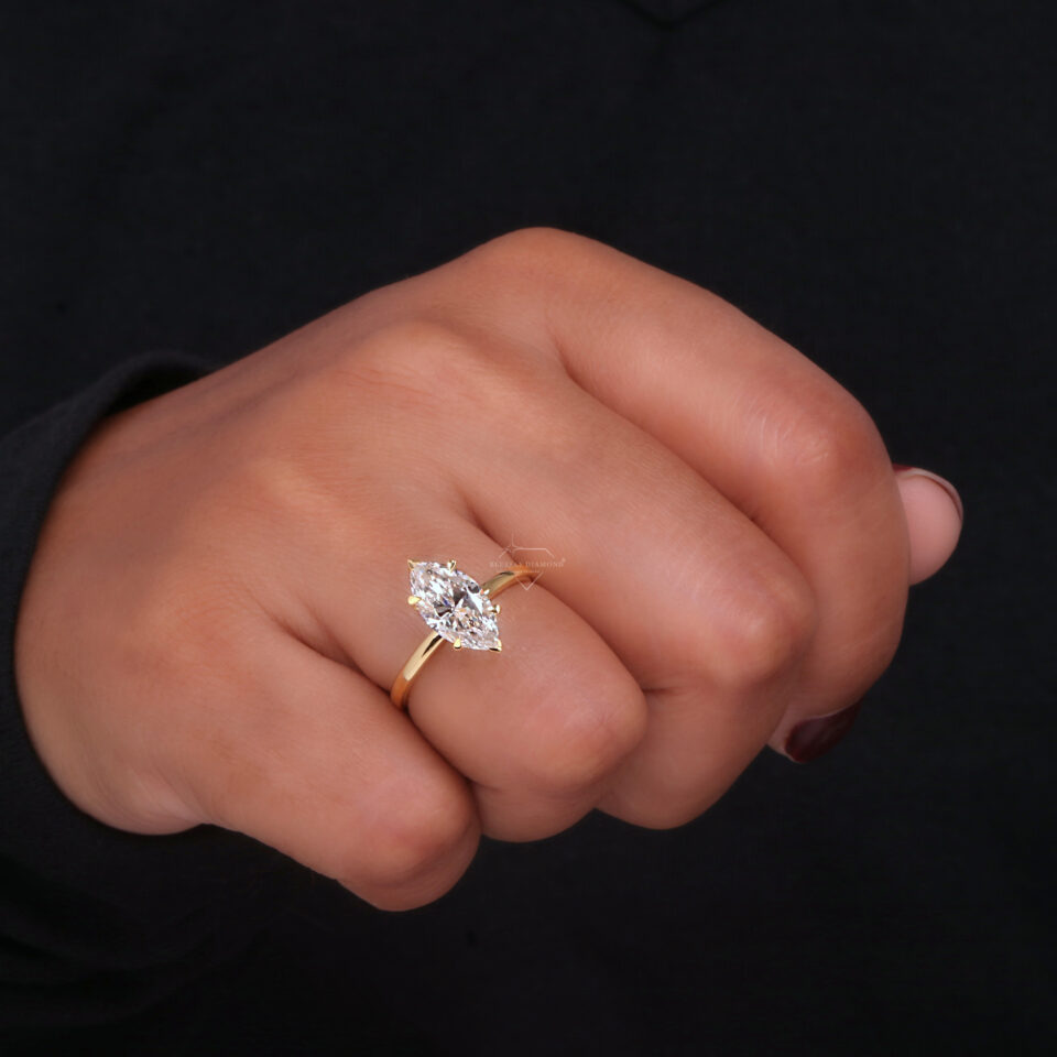 Marquise Cut Solitaire Diamond Engagement Ring with Gold Band