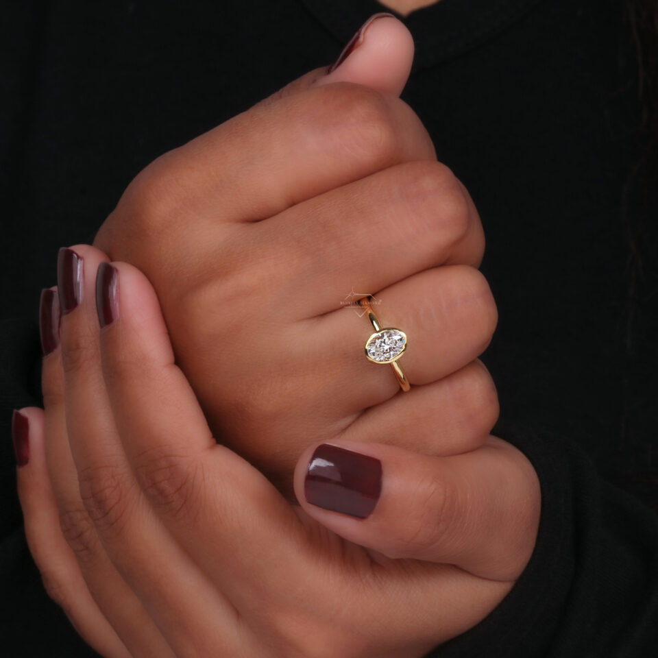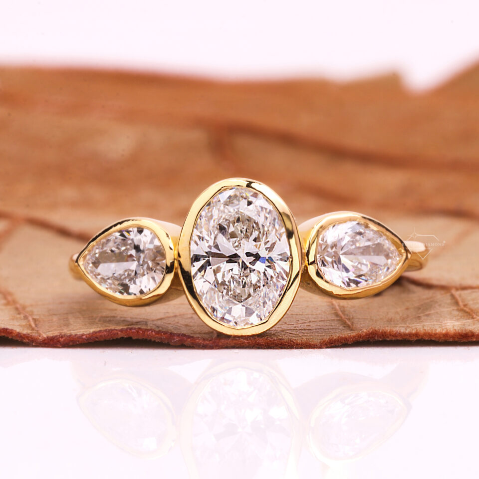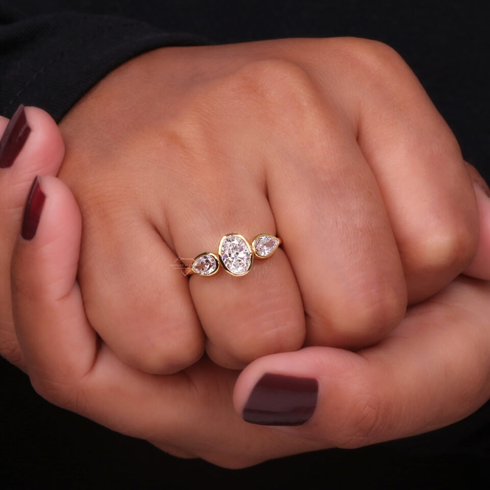 Oval & Pear Cut Three Stone Bezel Set Diamond Ring