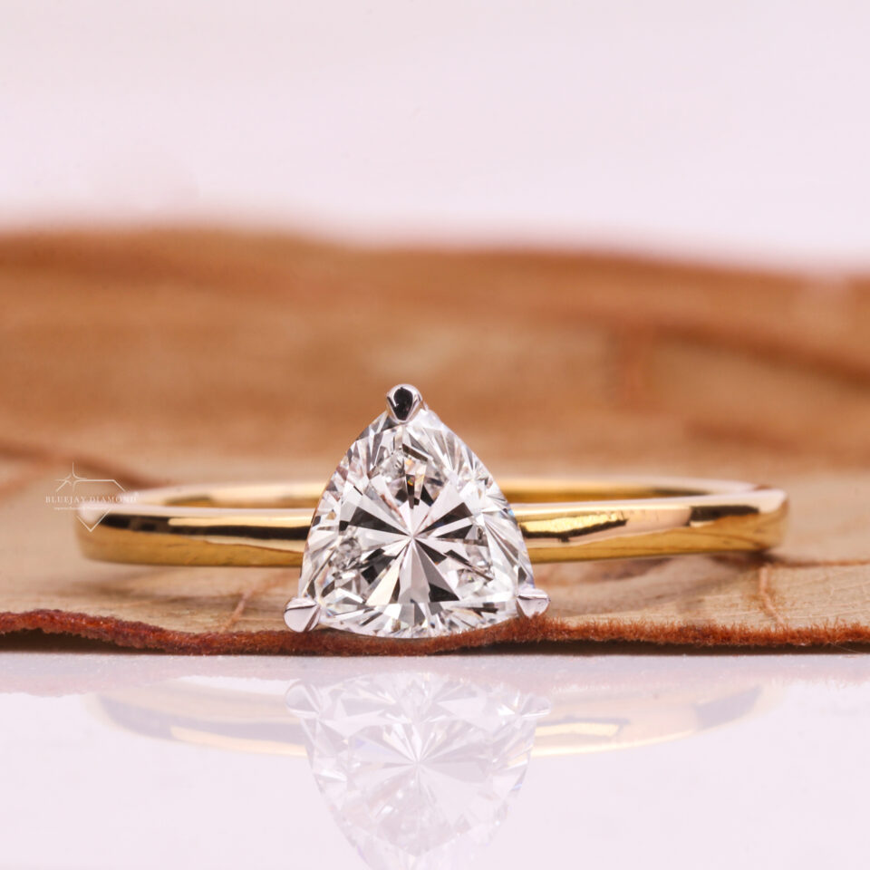 Trillion Cut Lab Grown Diamond Solitaire Ring with Pave Band