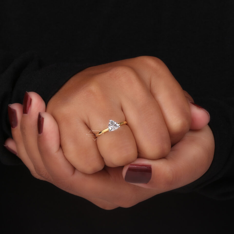 Trillion-Cut Diamond Trio Ring in Yellow Gold – Three-Stone Elegance