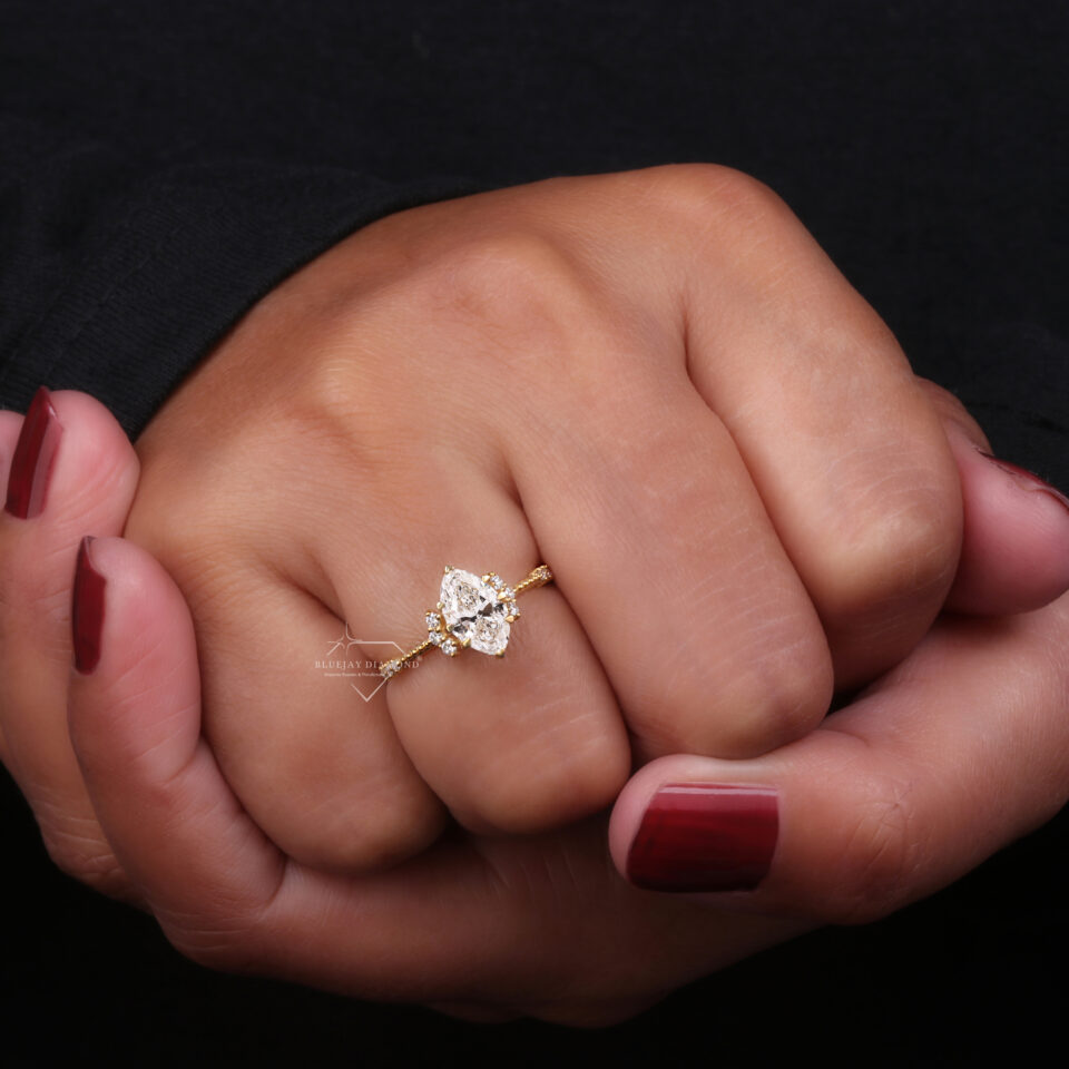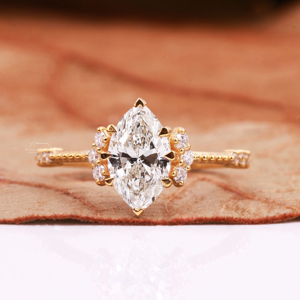 Vintage-Inspired Marquise Cut Lab Grown Diamond Engagement Ring.