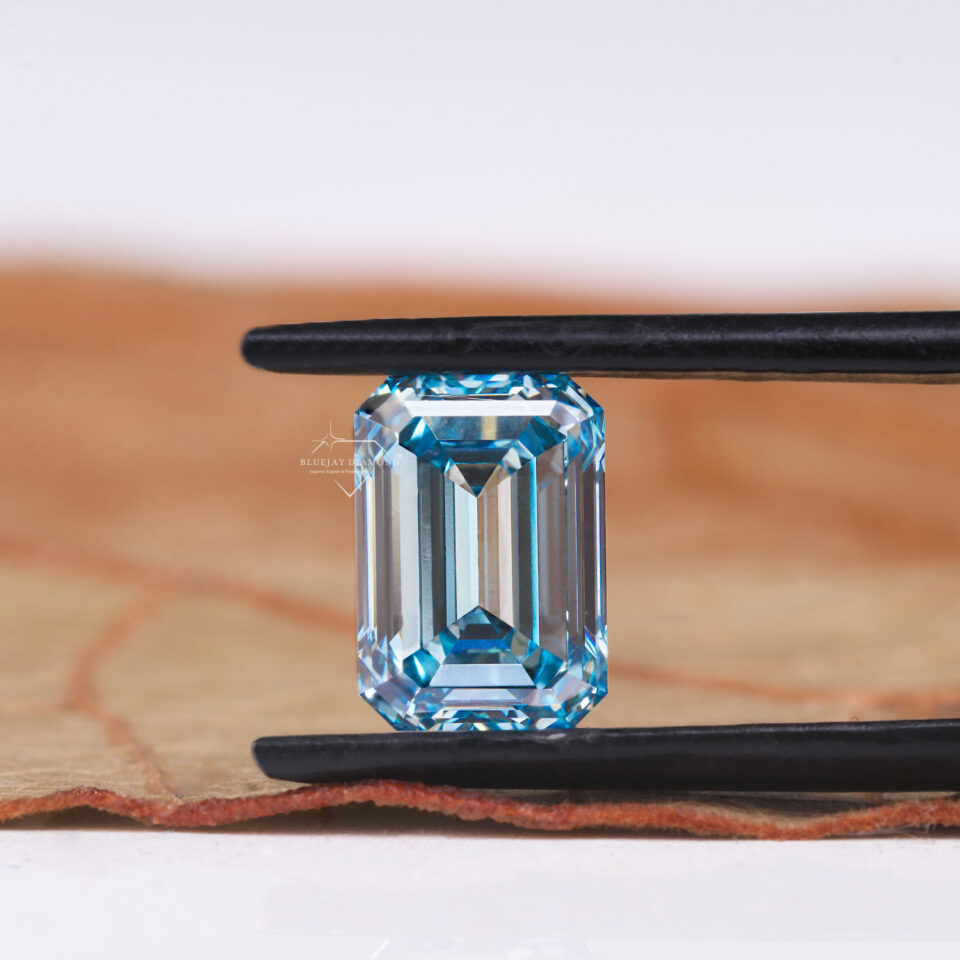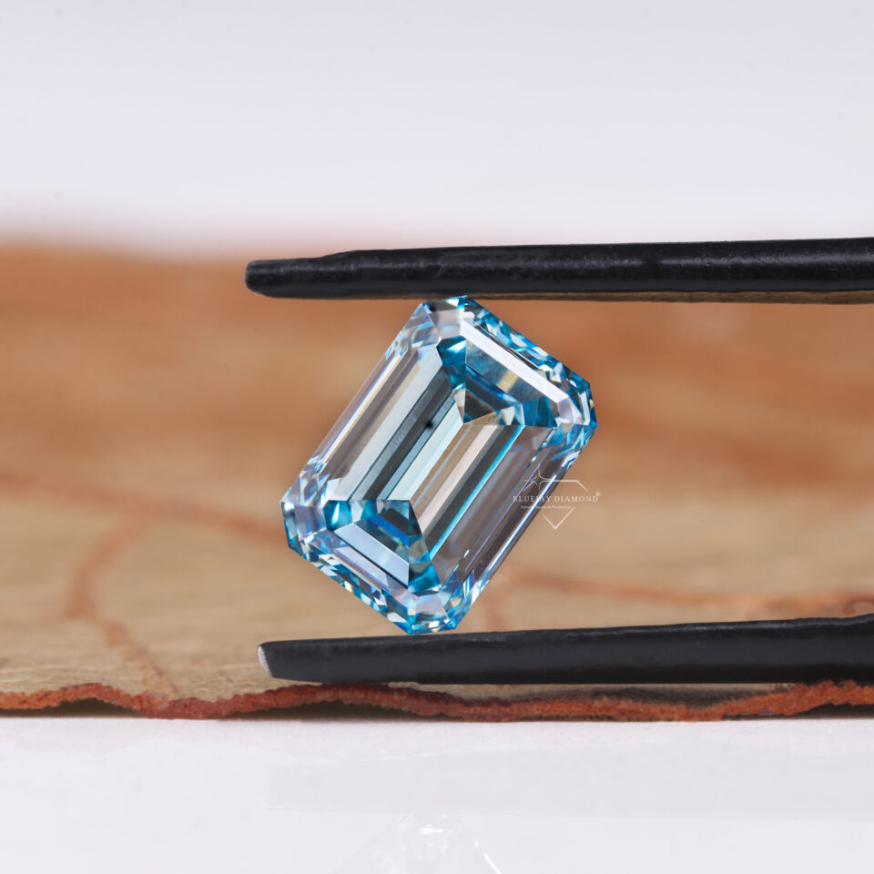 1.0 CT Emerald Cut Vivid Blue Lab Grown Diamond