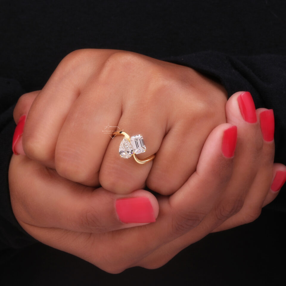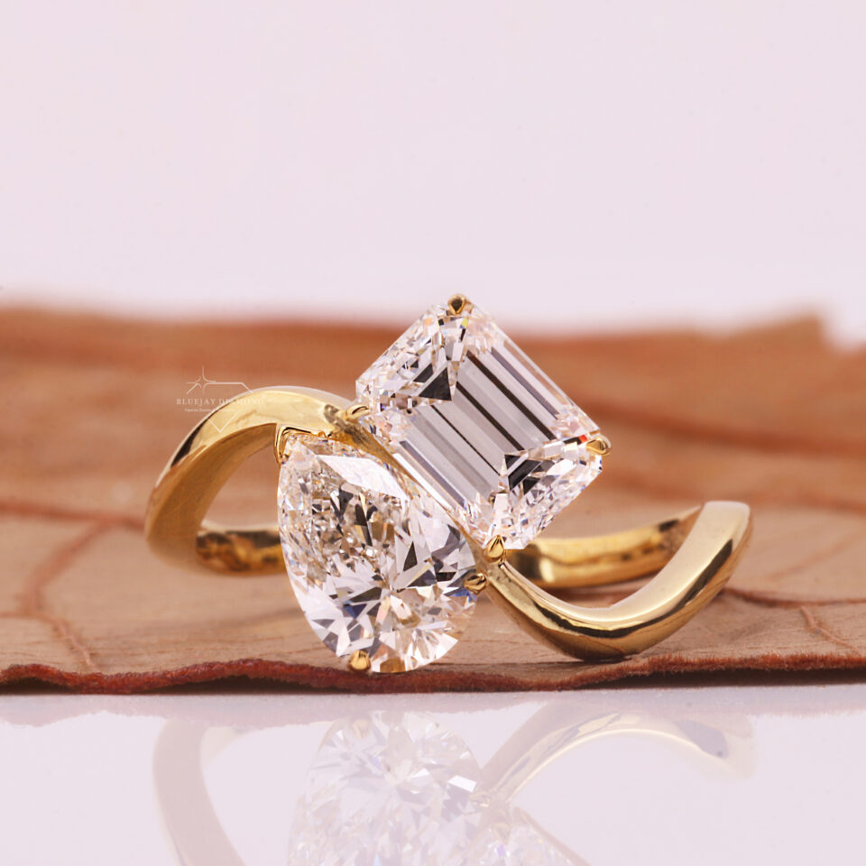 Pear and Emerald Cut Toi Et Moi Lab Grown Diamond Ring
