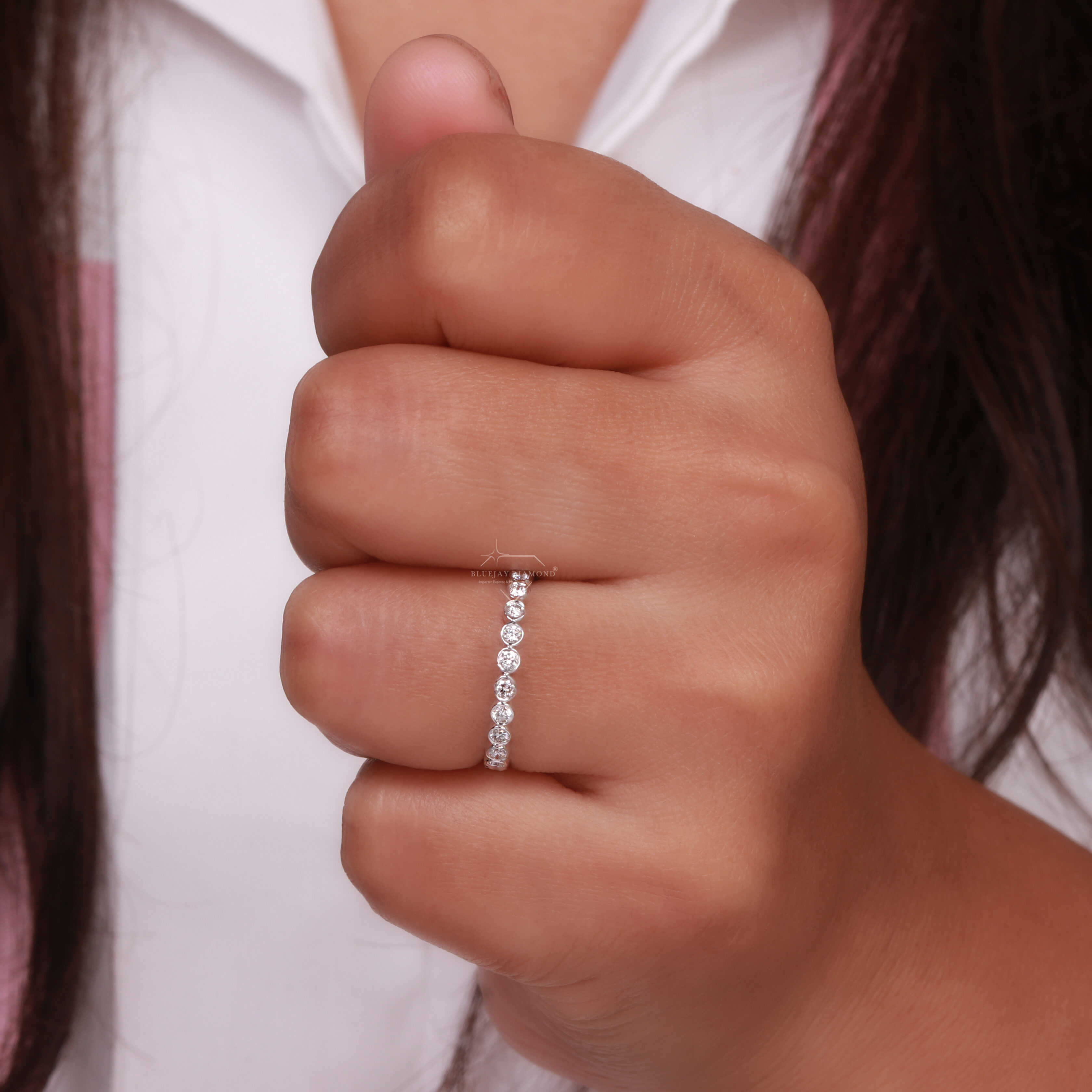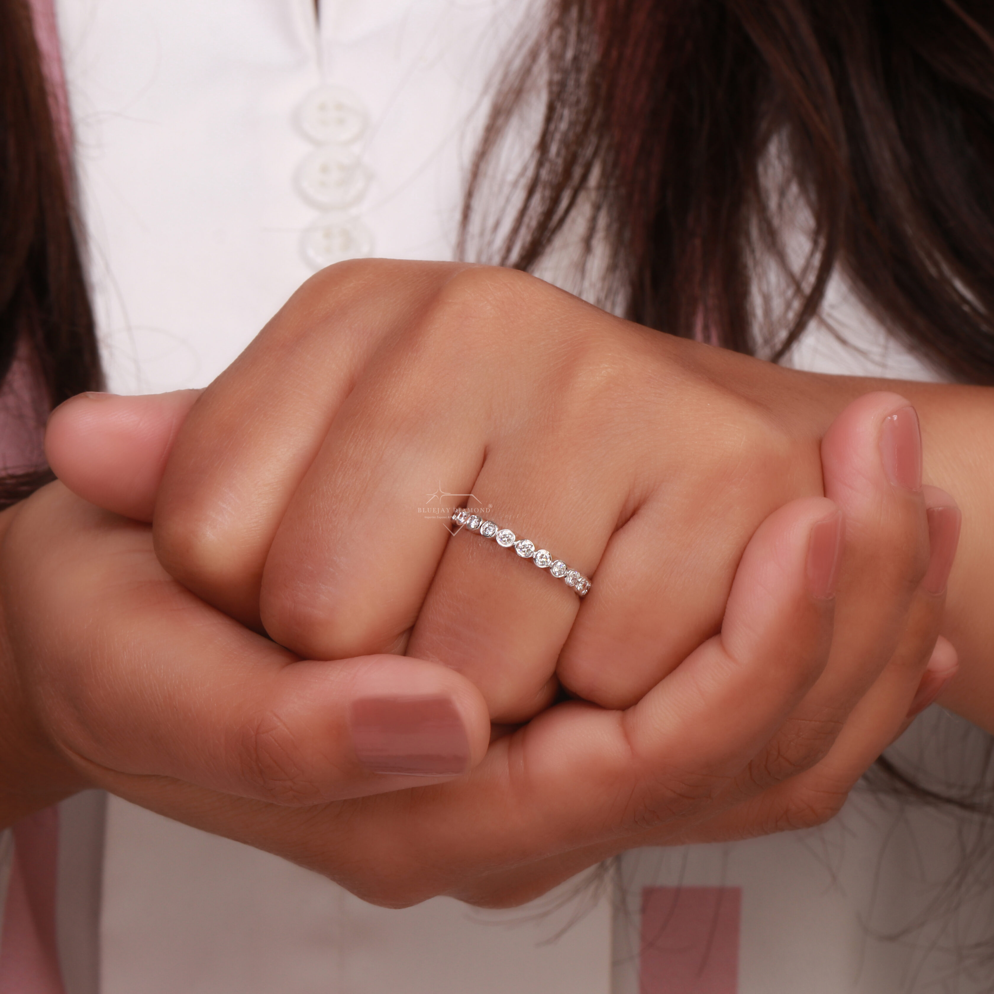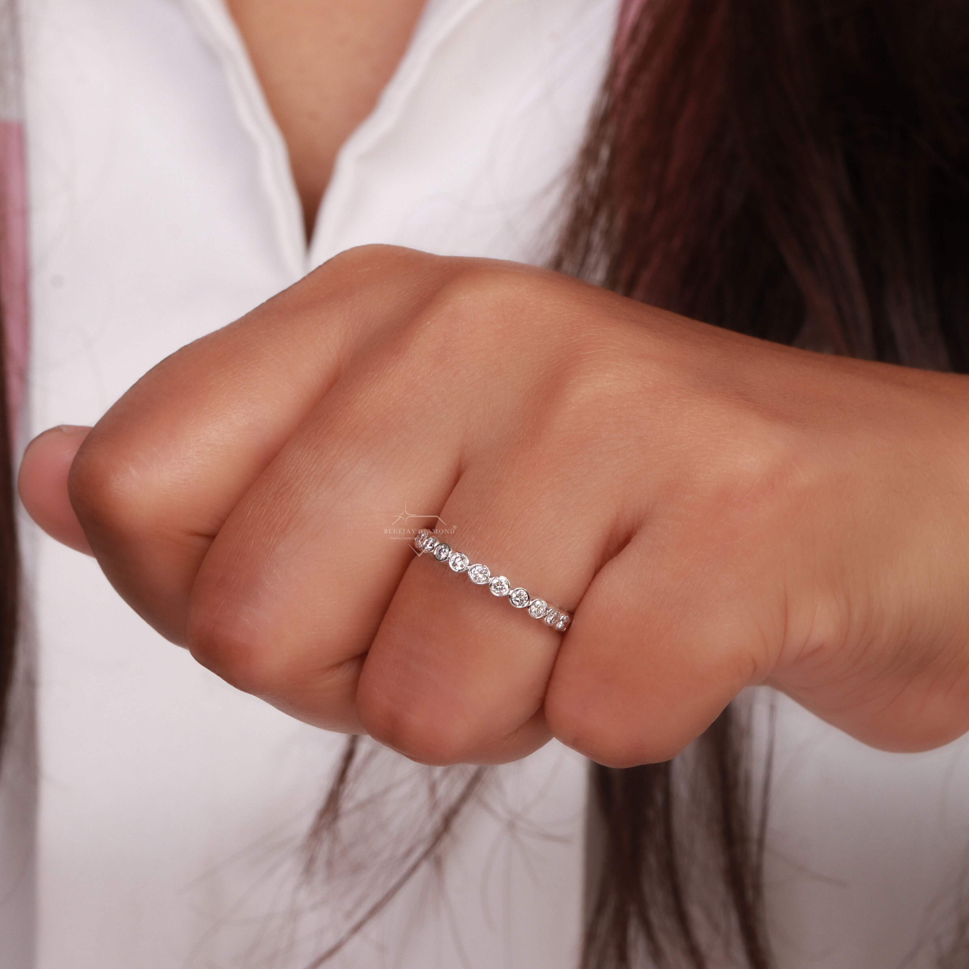 Ring Style: Full eternity band (diamonds encircle the entire ring).