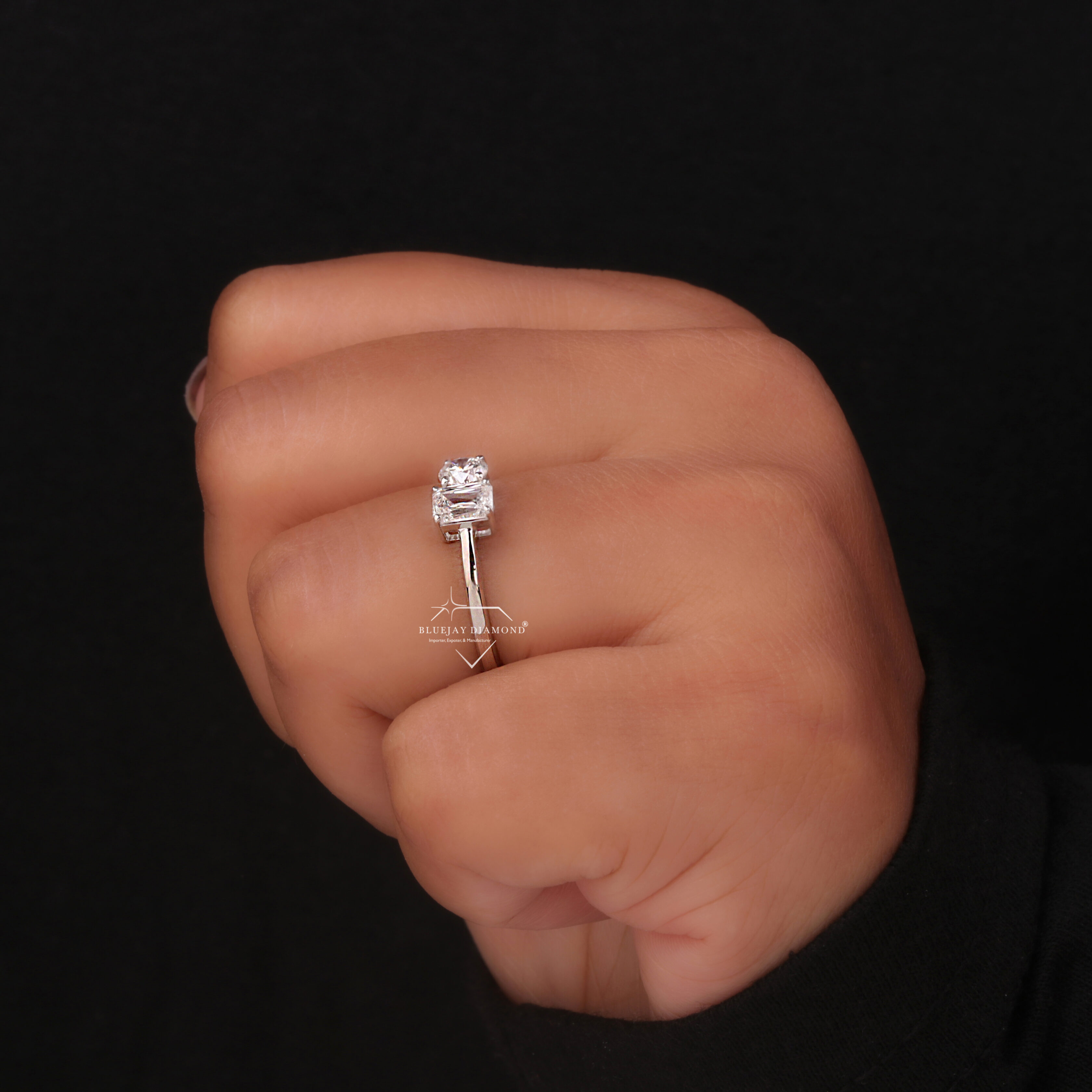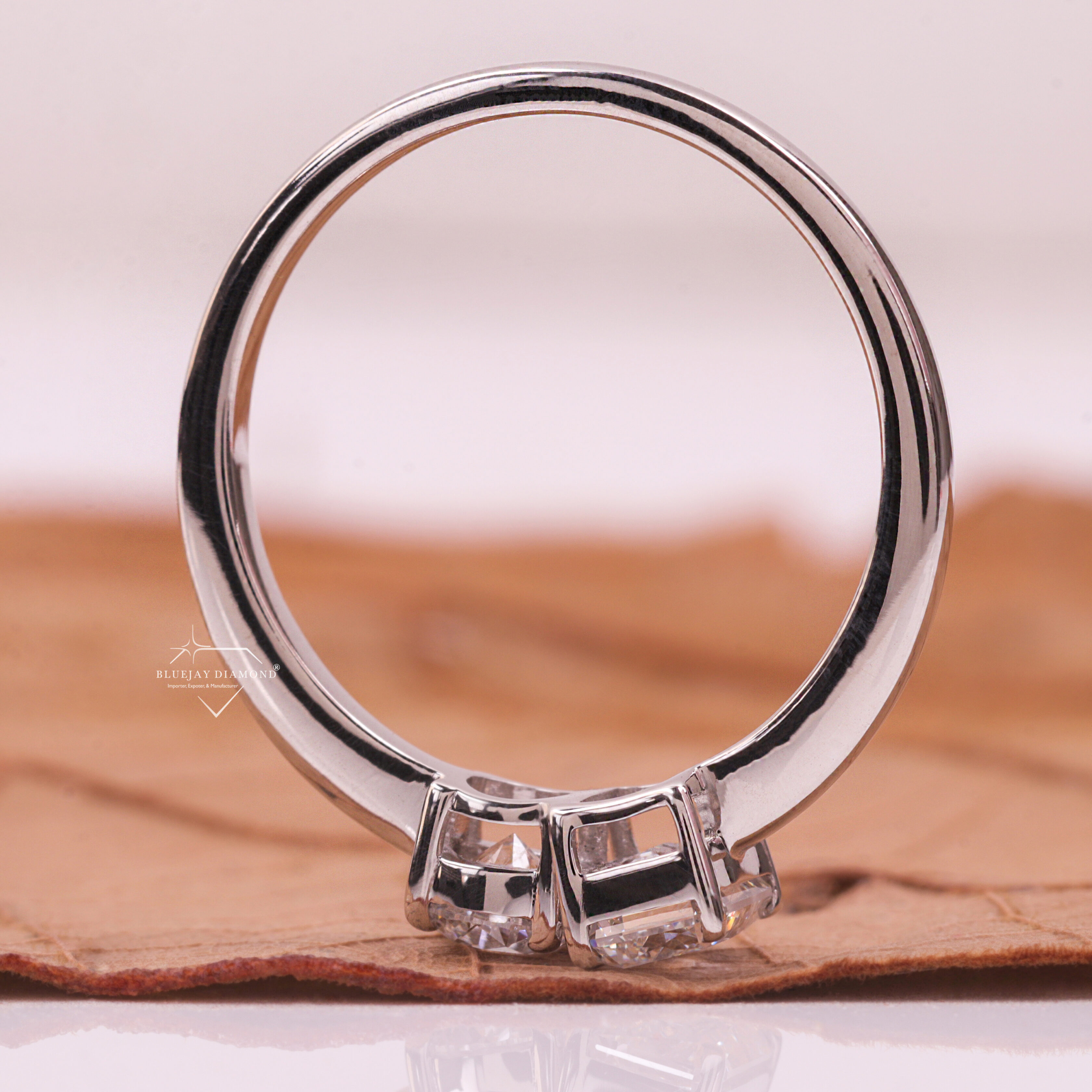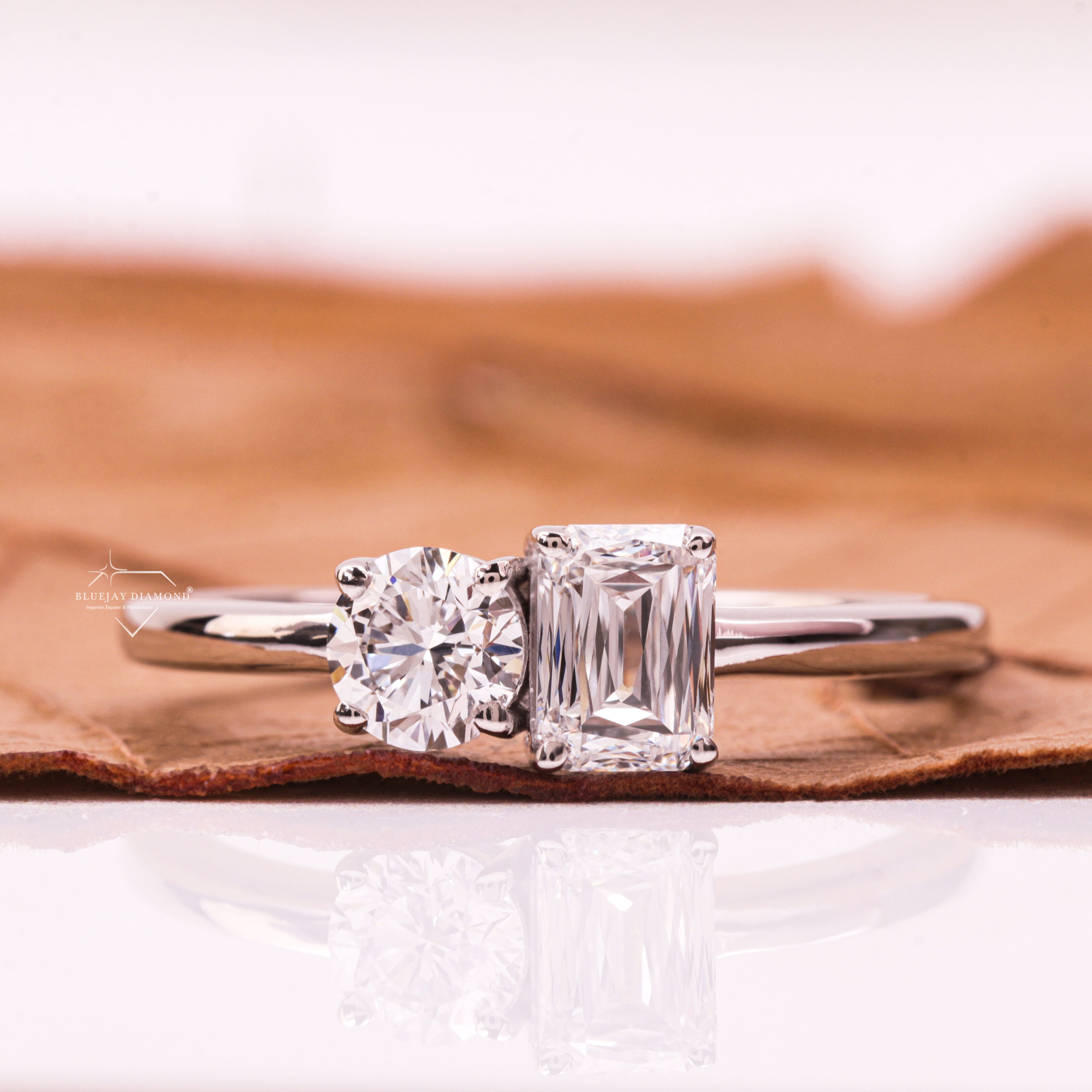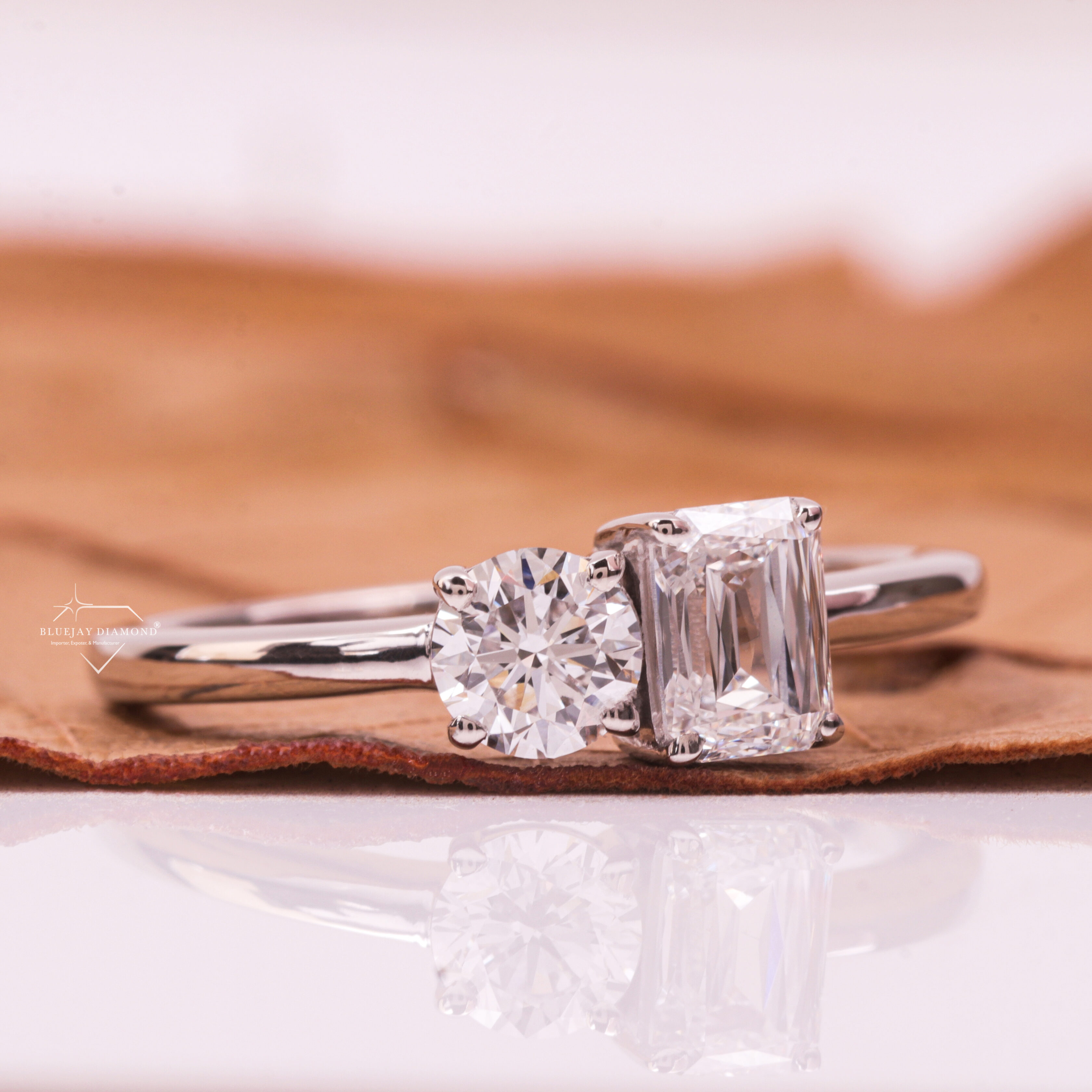 Diamond Shape 2 (Right): The diamond on the right is an emerald cut diamond.