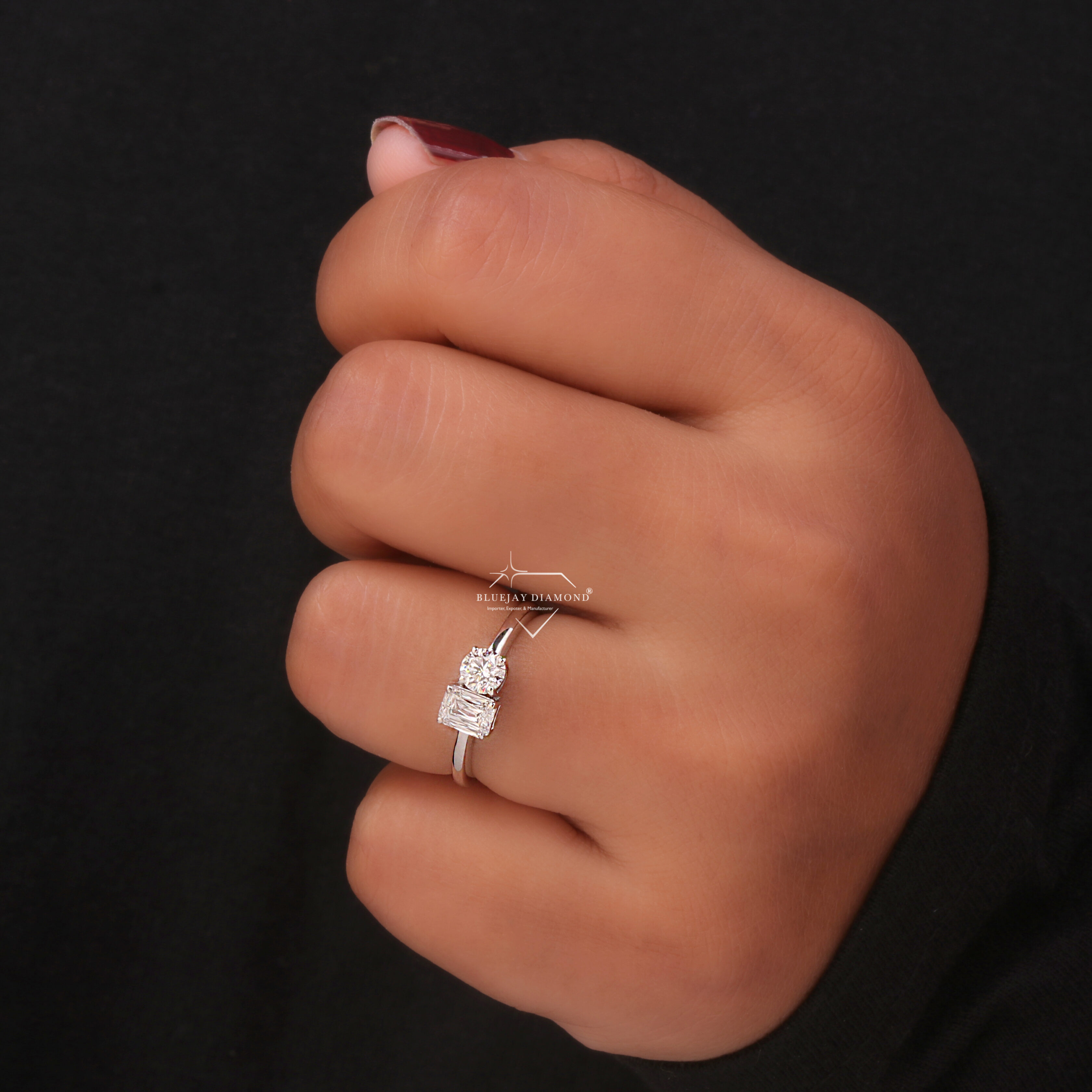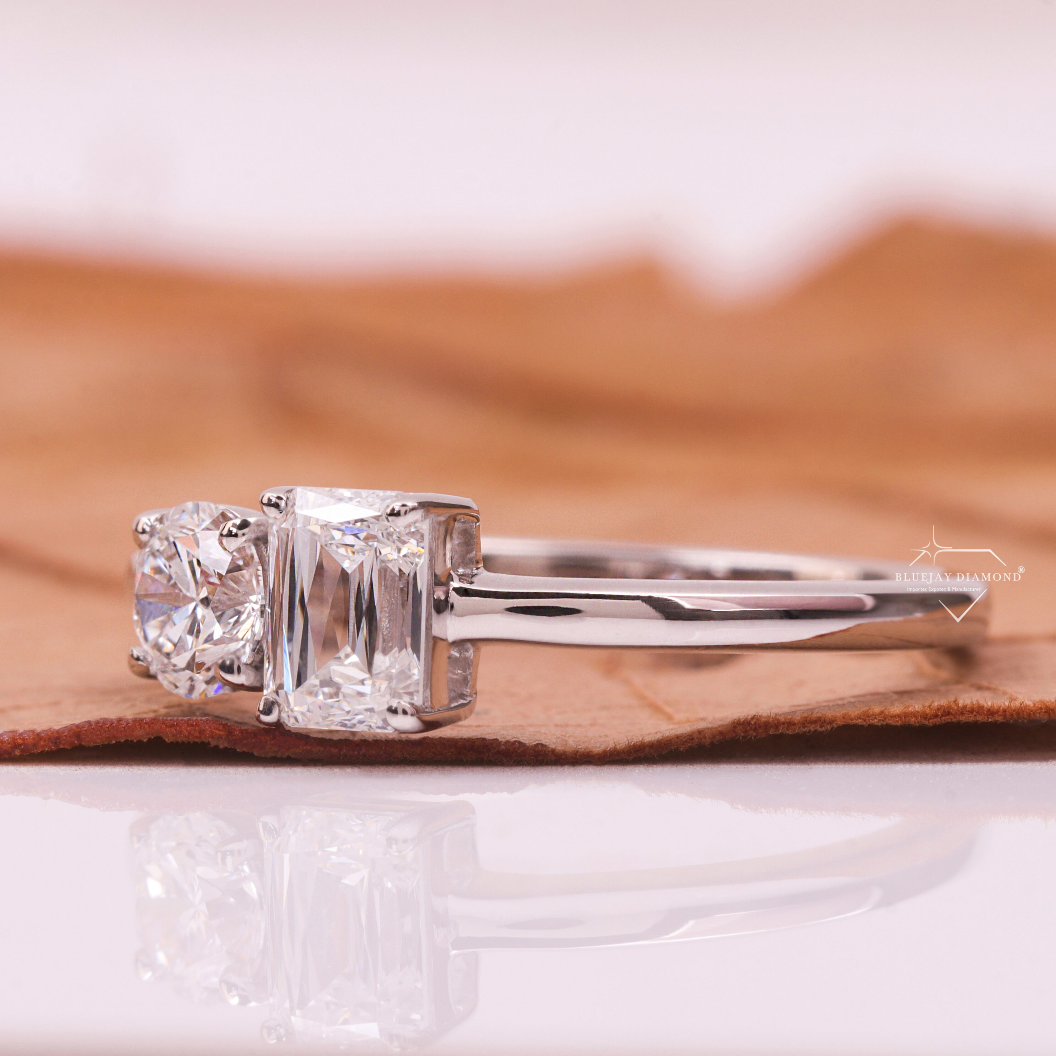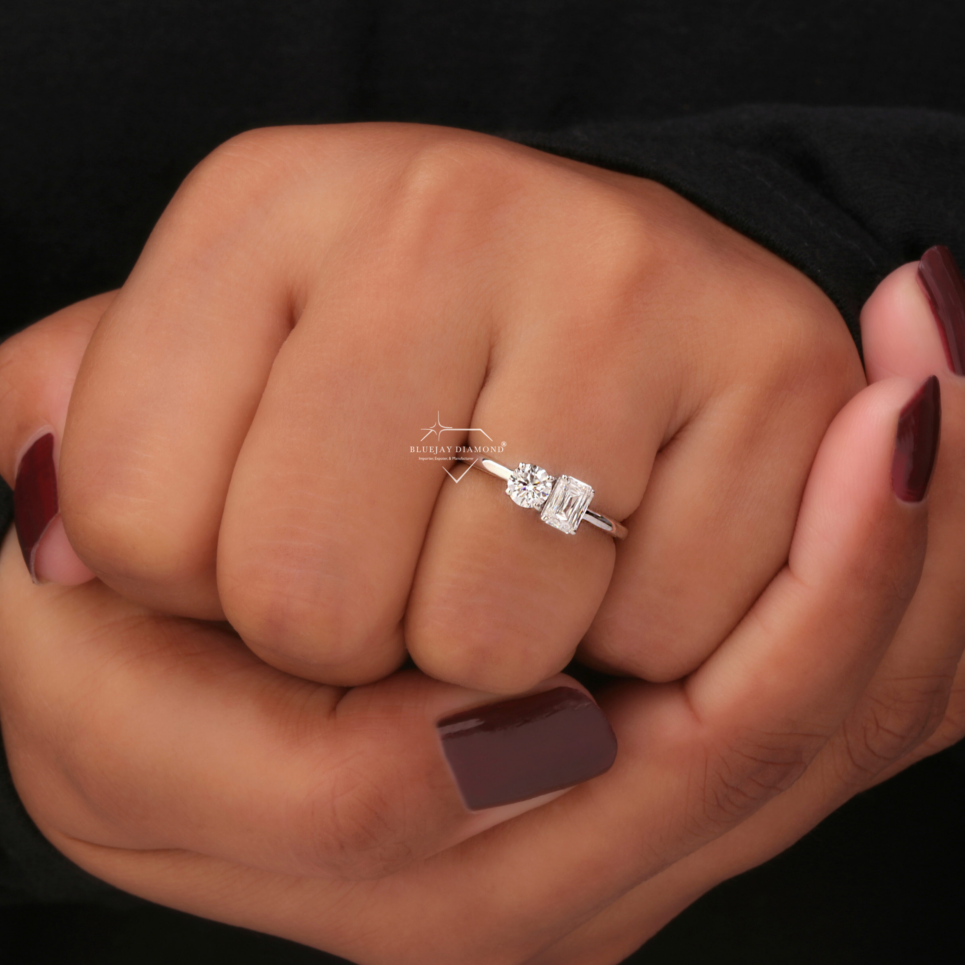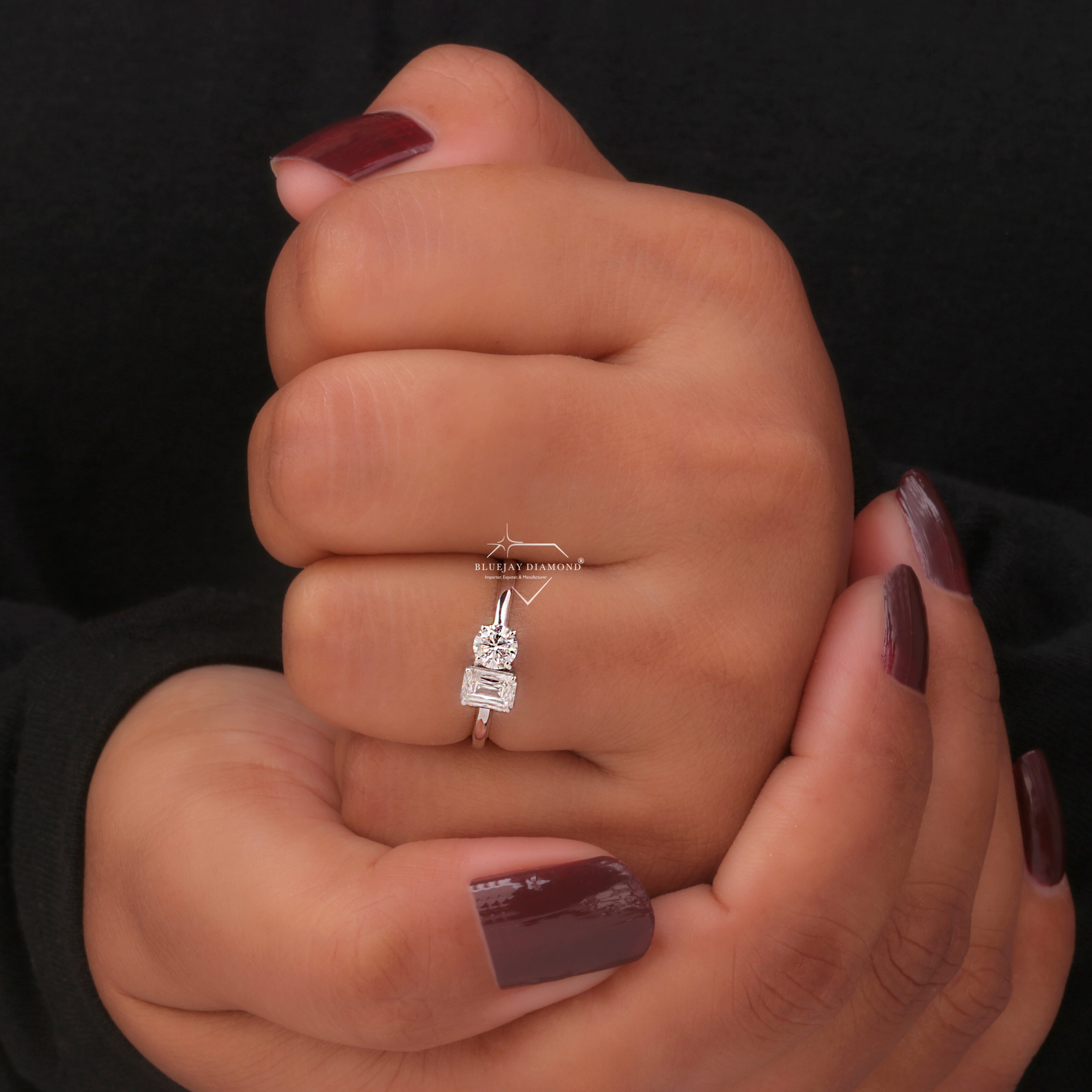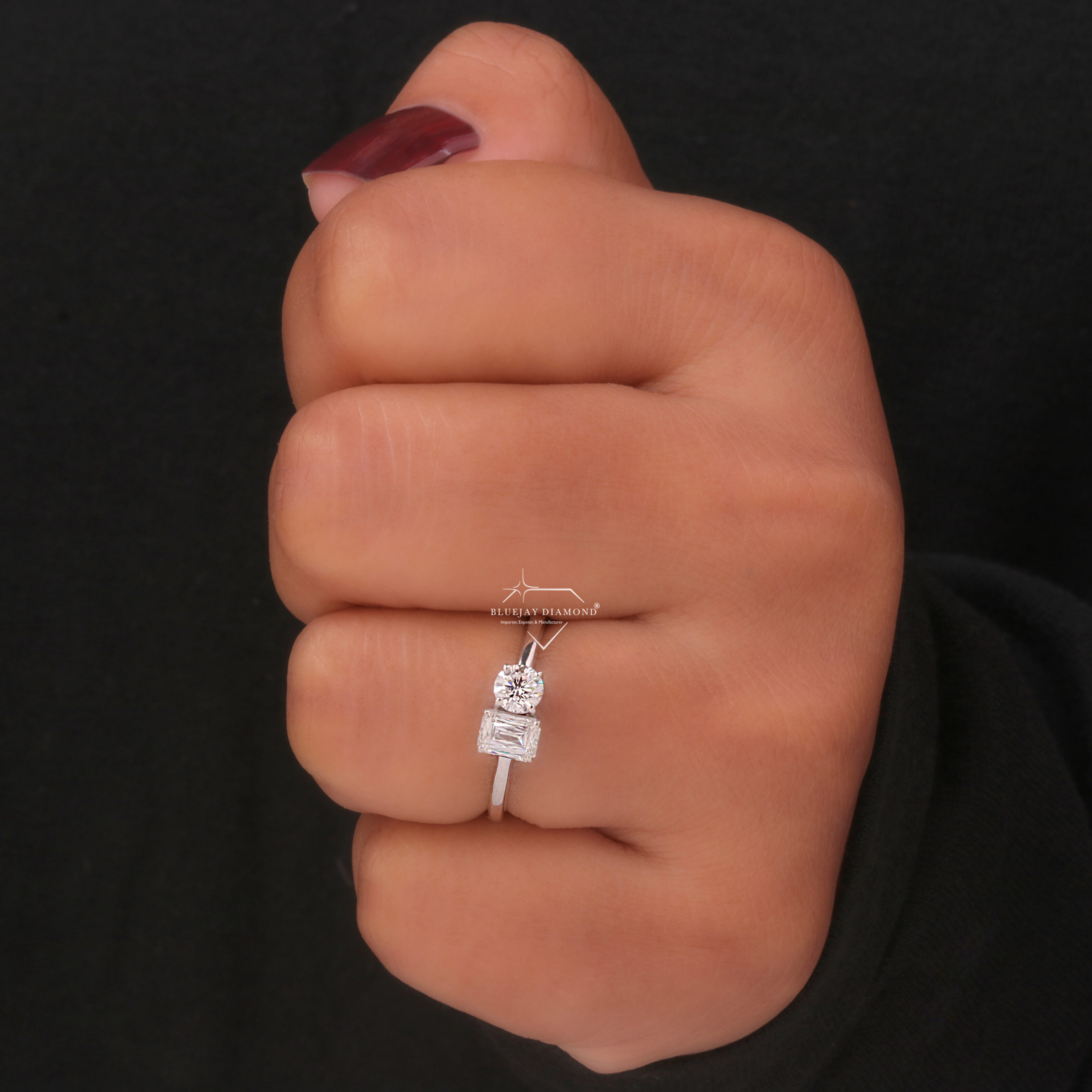 Diamond Shape 2 (Right): The diamond on the right is an emerald cut diamond.
