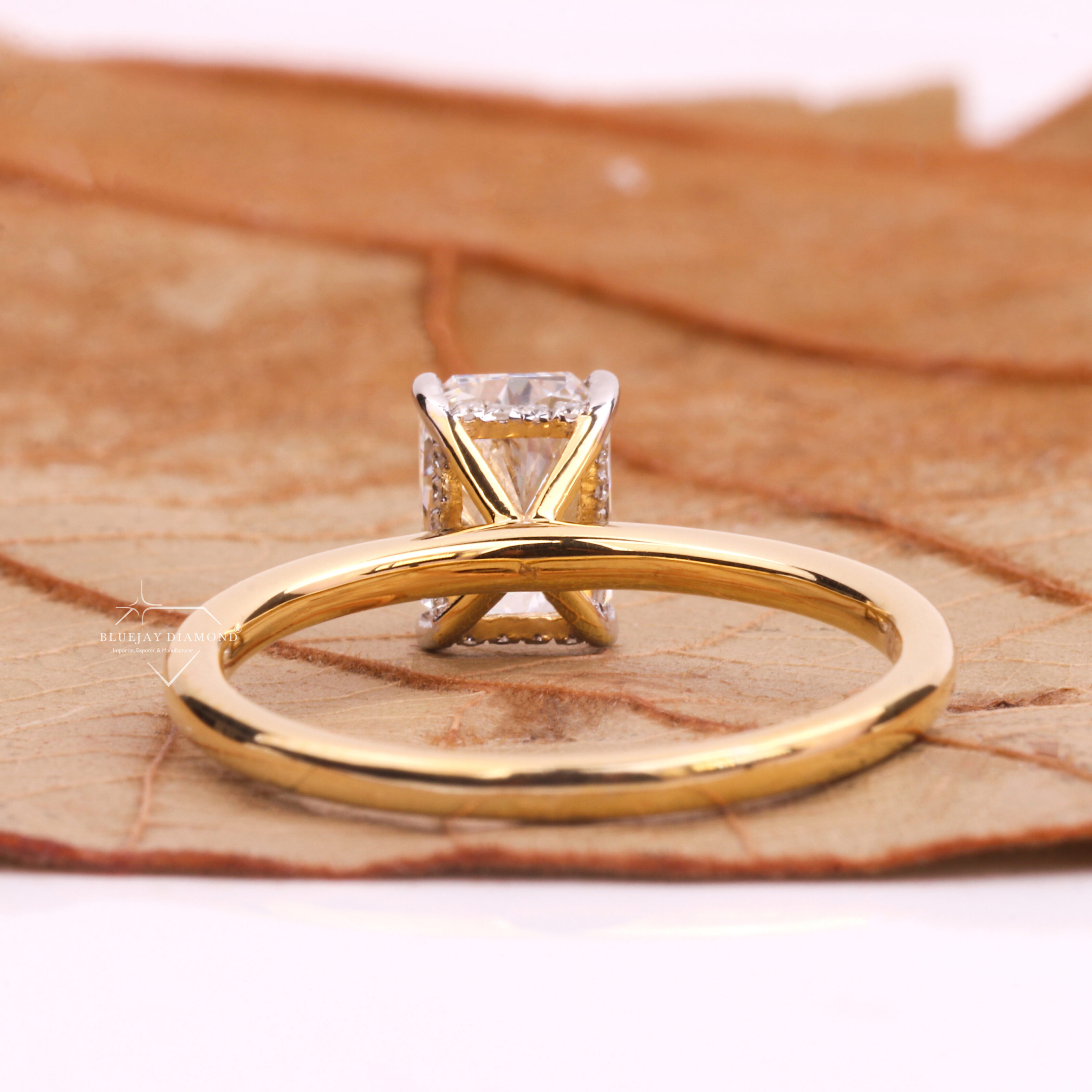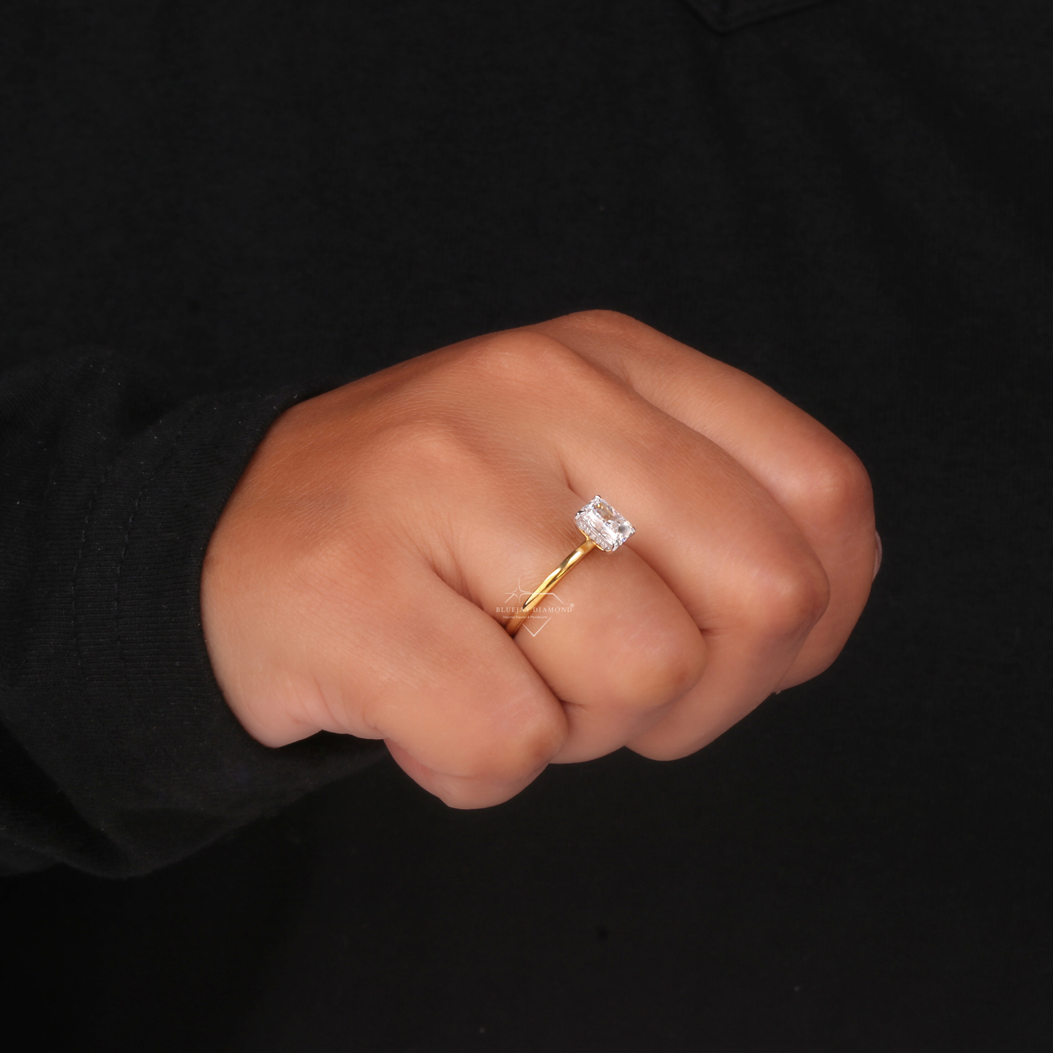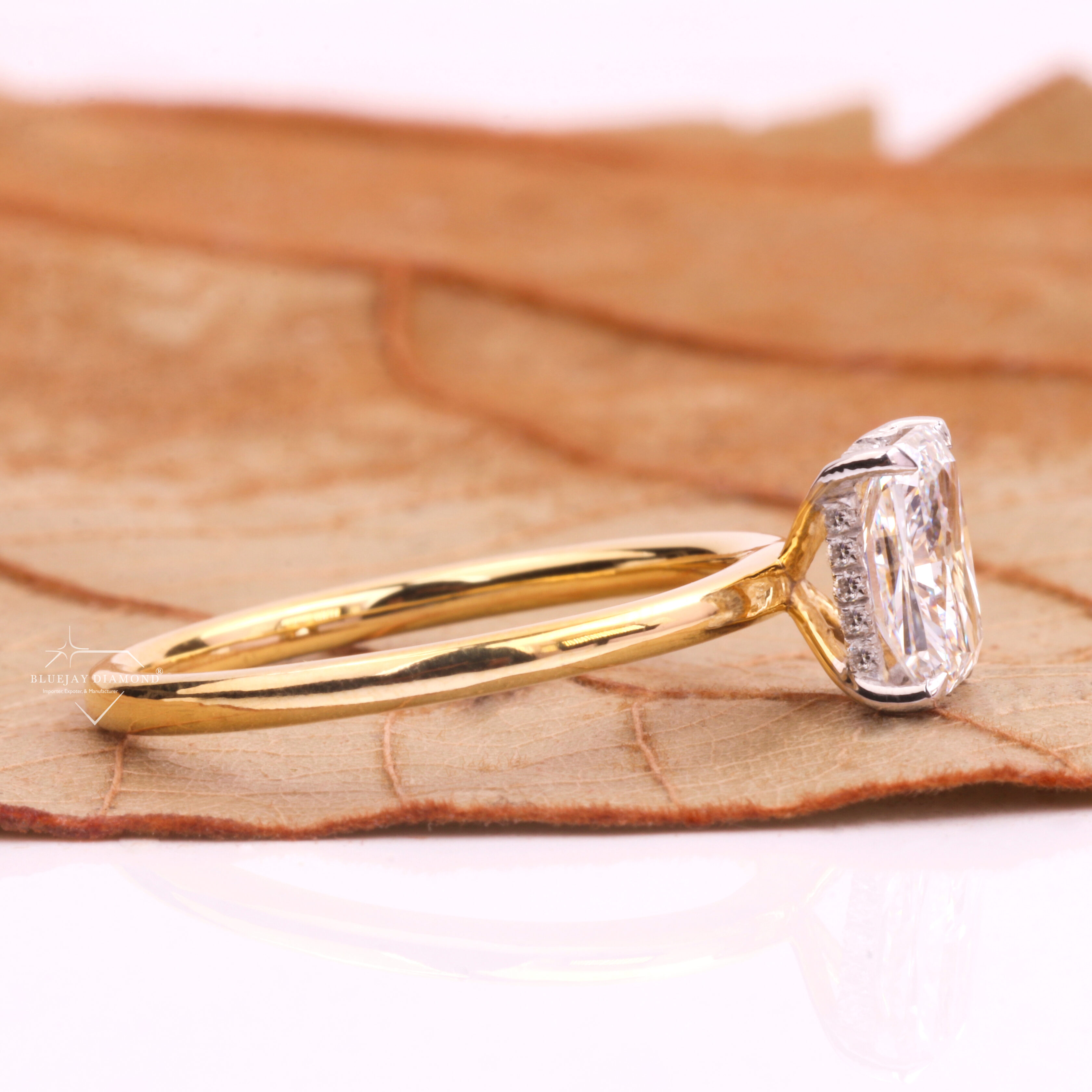 - Diamond Shape: The centerpiece is an elongated Radiant Cut diamond.