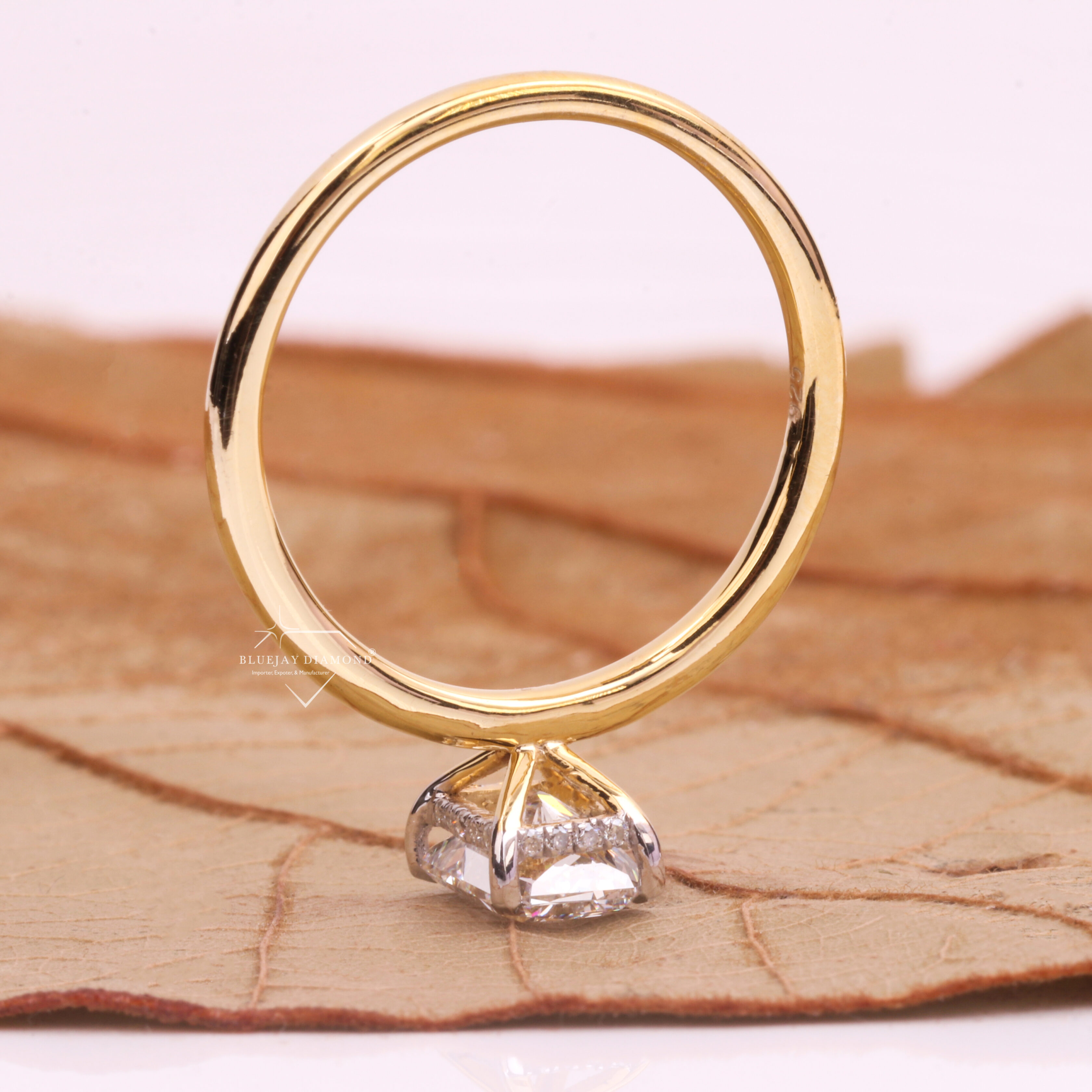 - Setting Style: The diamond is secured by a four-prong setting, which holds the stone firmly while allowing ample light to enter and enhance its sparkle.