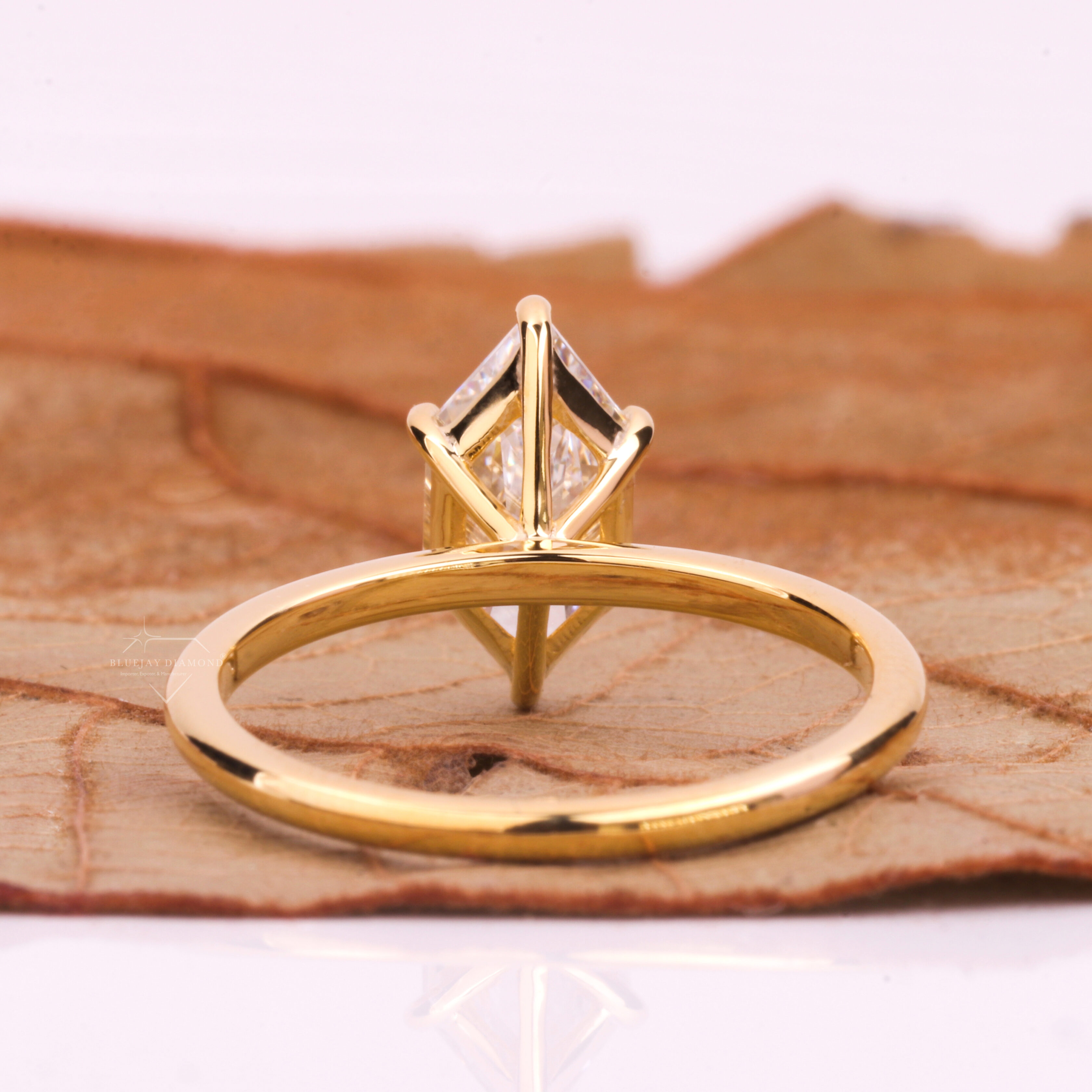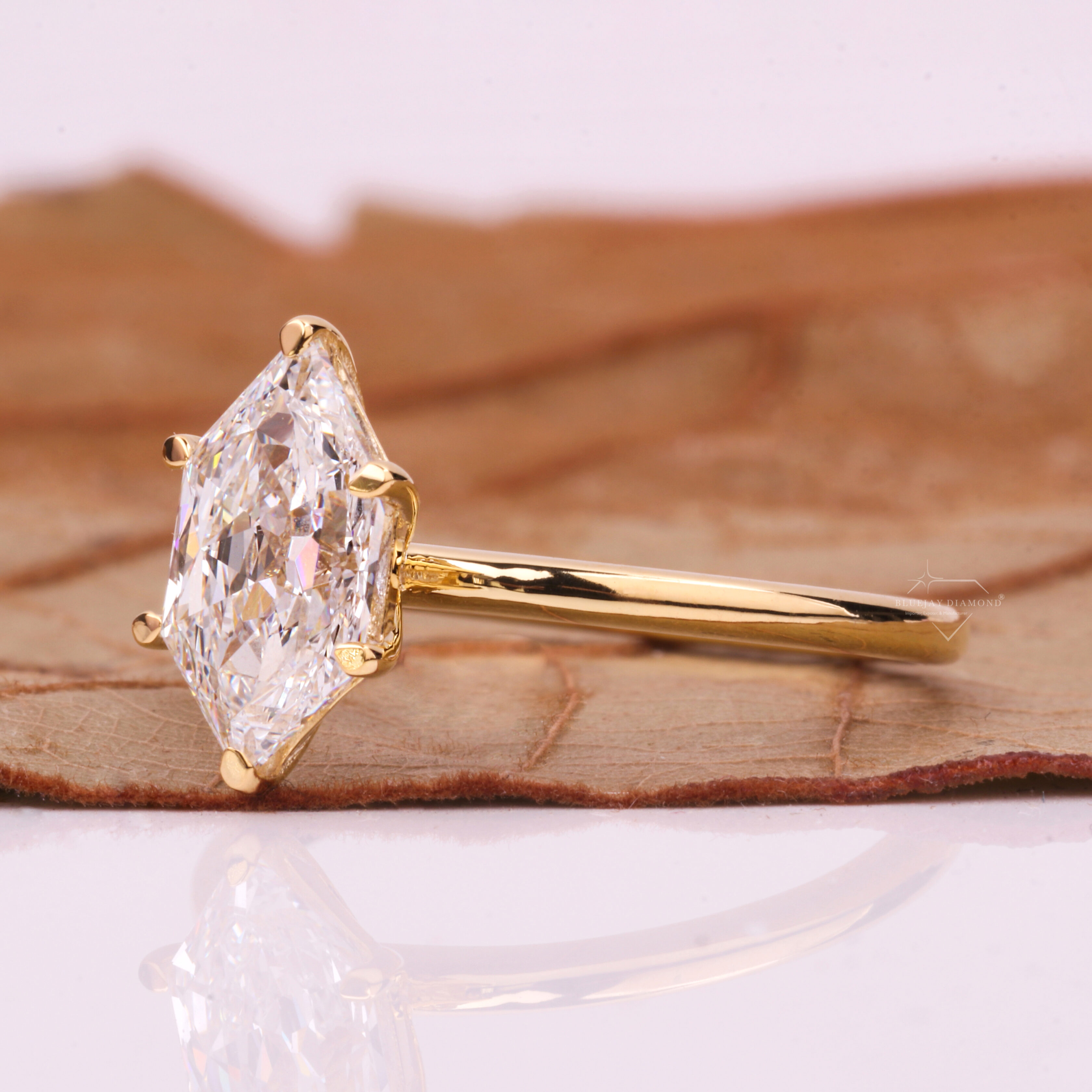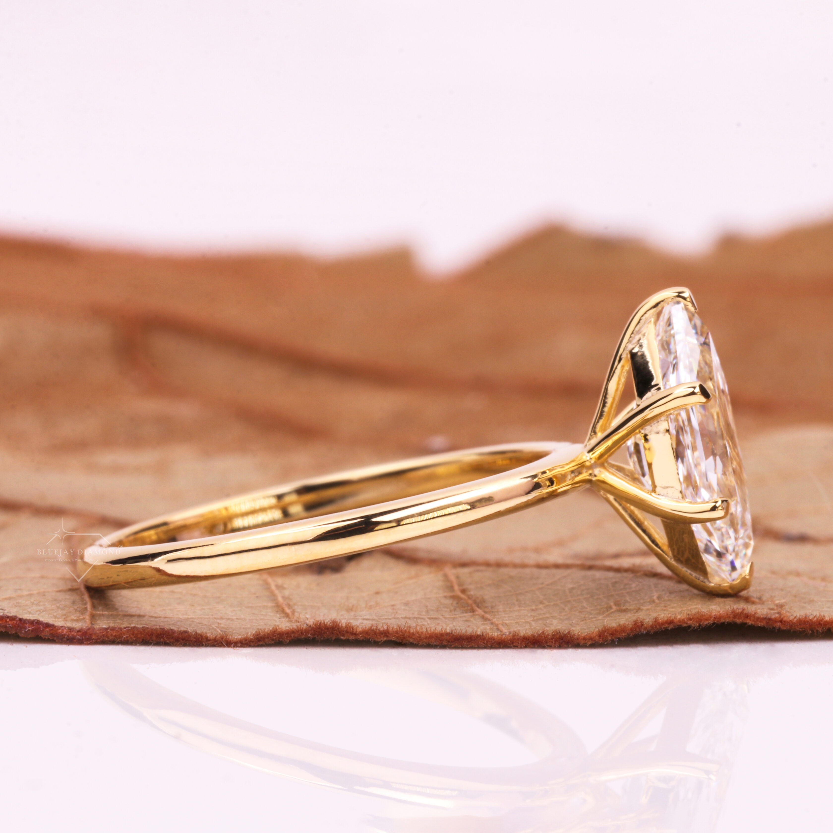 - Plain Band: The ring features a sleek and simple, unadorned band, likely crafted from yellow gold, which puts the entire focus on the striking marquise diamond.