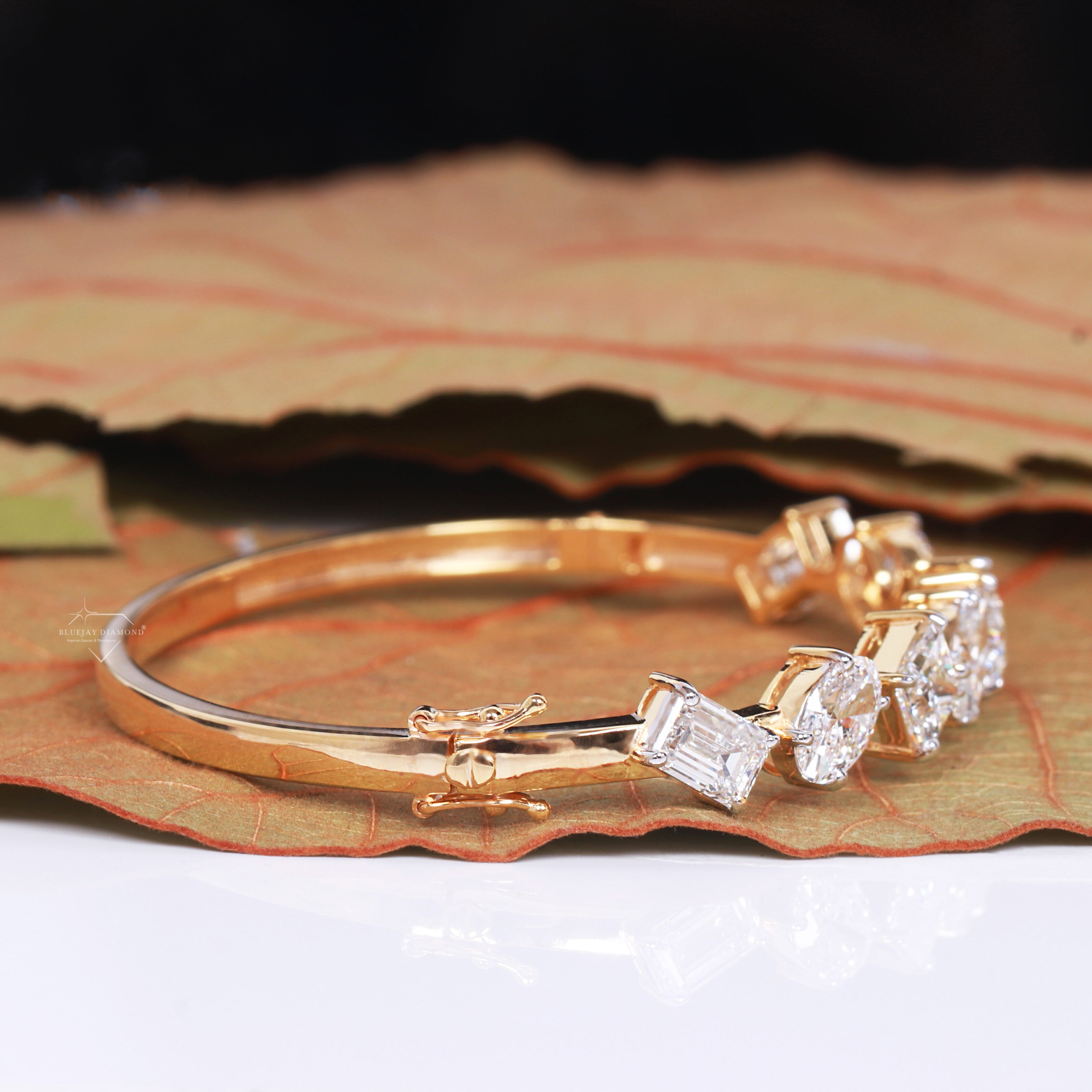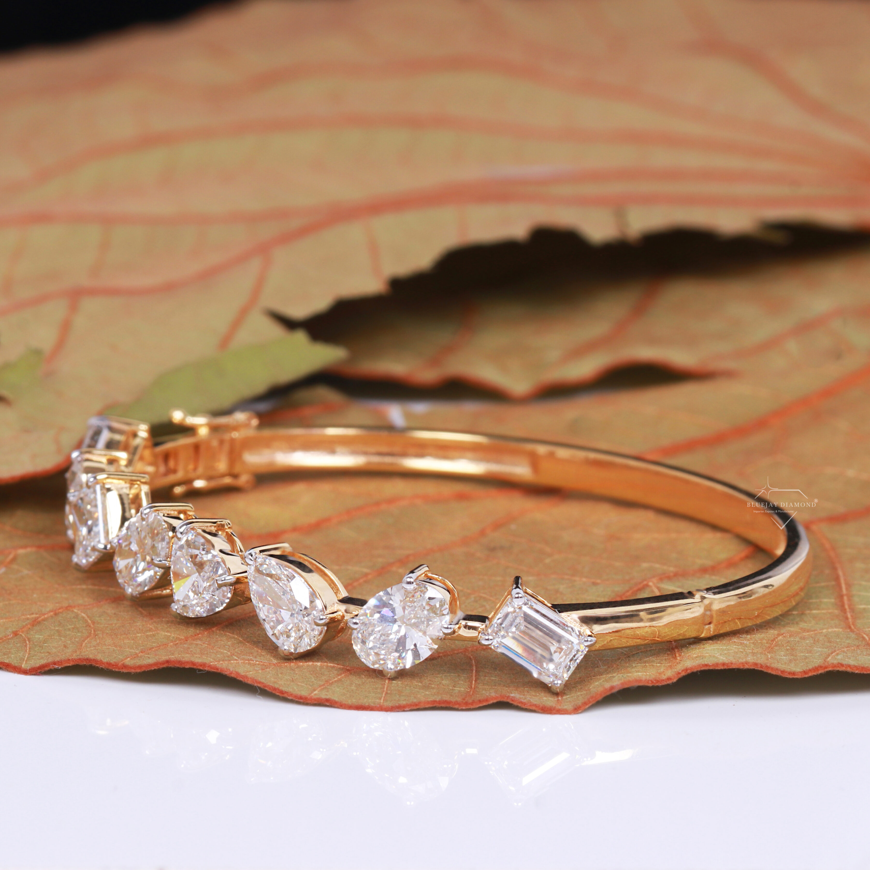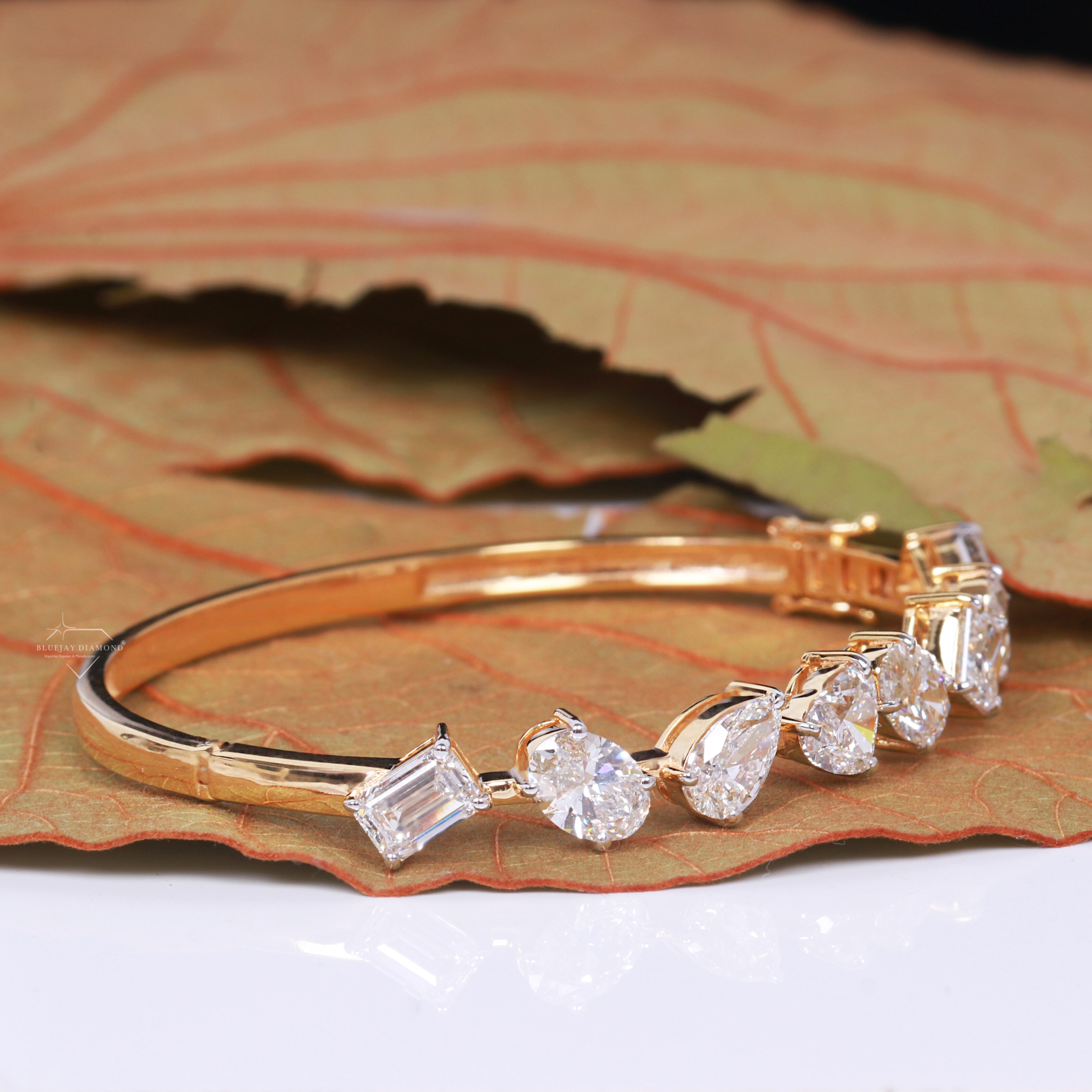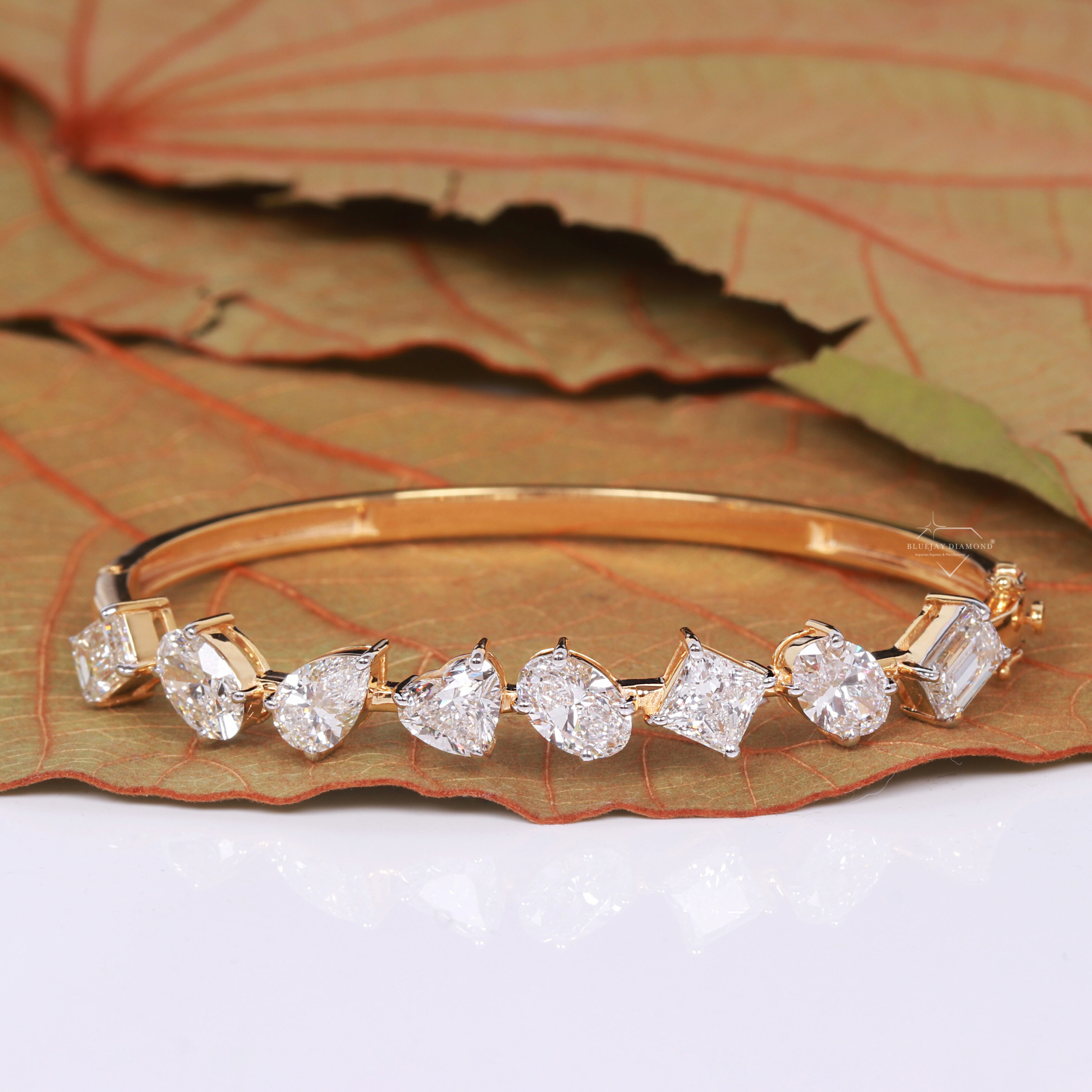 - Diamond Shapes: The bracelet incorporates a variety of diamond shapes, including Emerald, Oval, Pear, Heart, Princess Cut. The alternating shapes create a dynamic and playful rhythm.