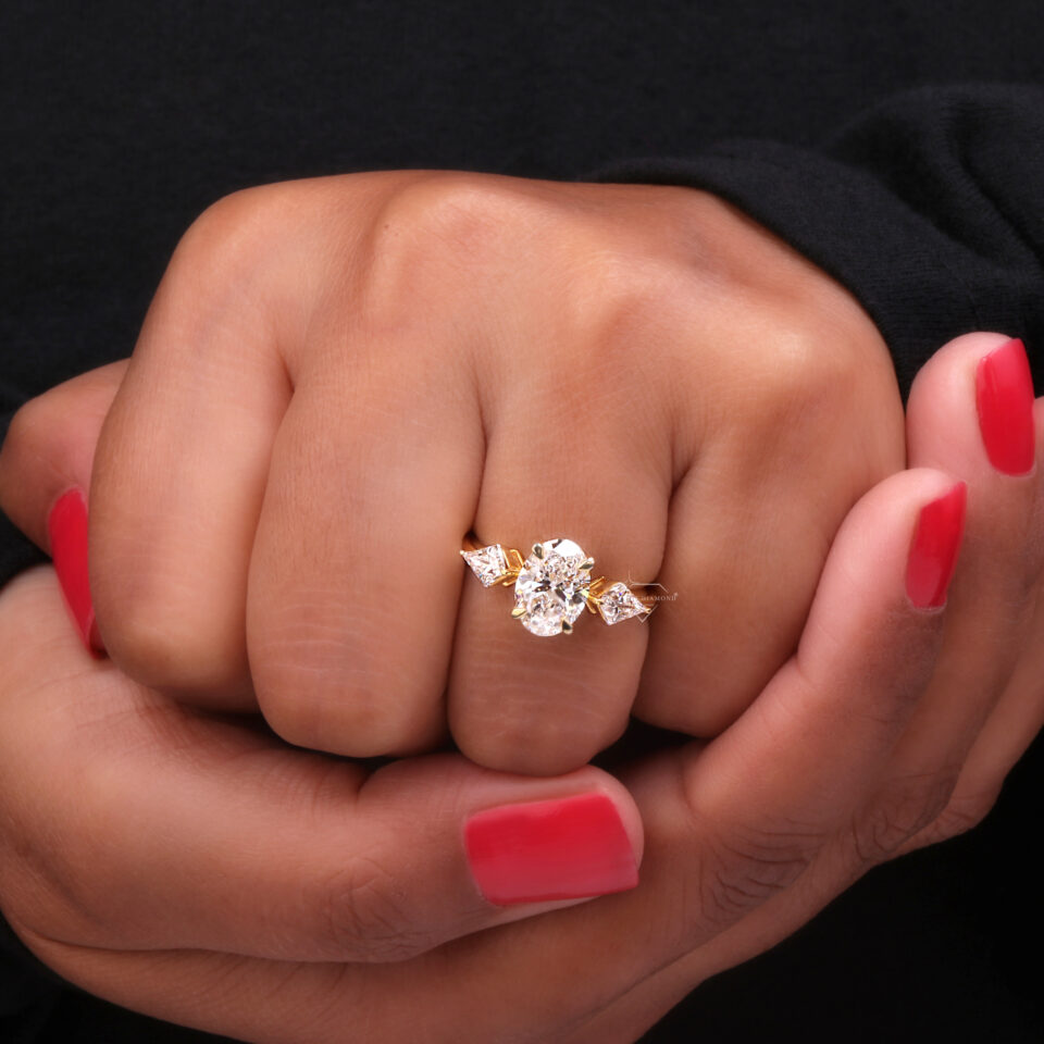 Oval Shape Three Stone Lab Grown Diamond Engagement Ring