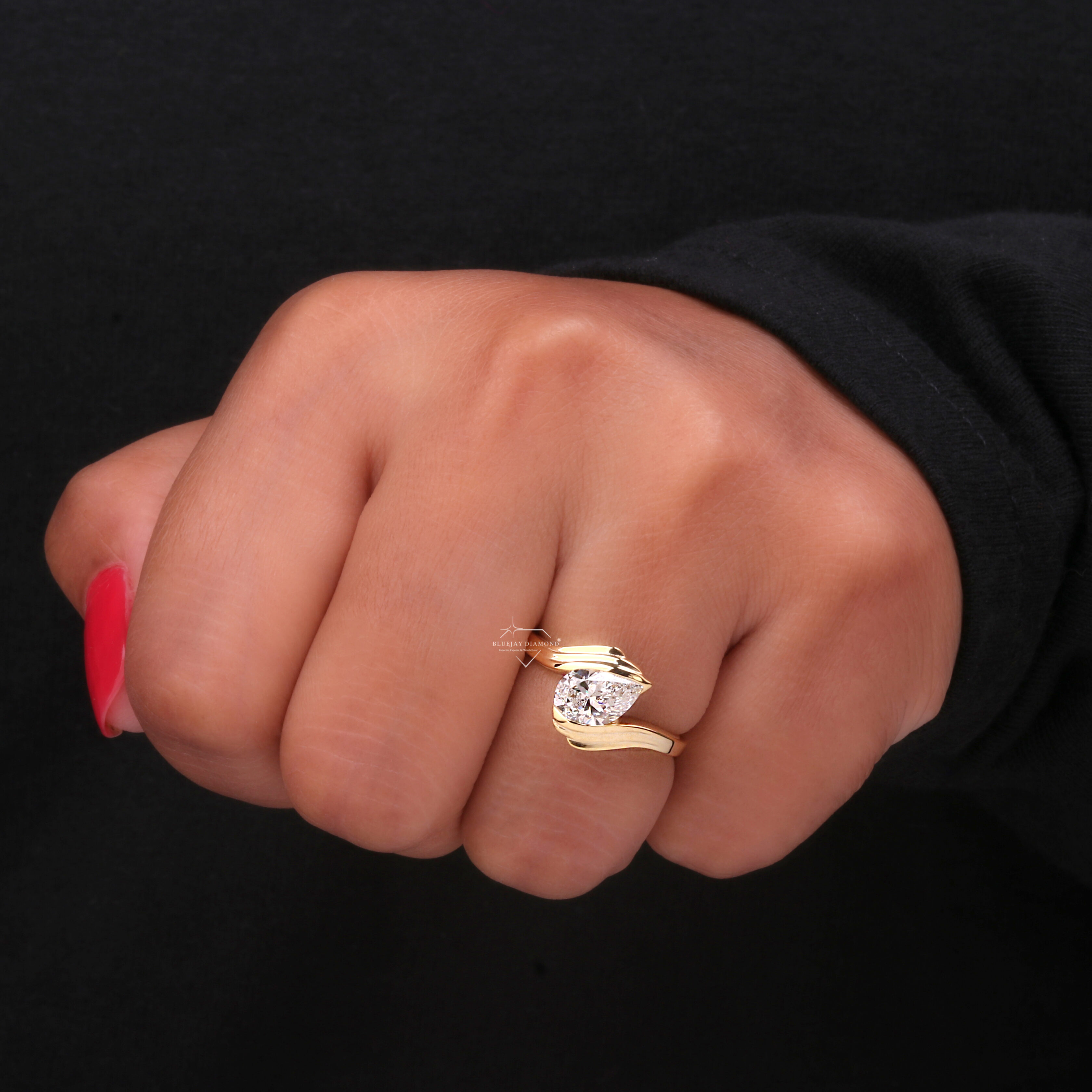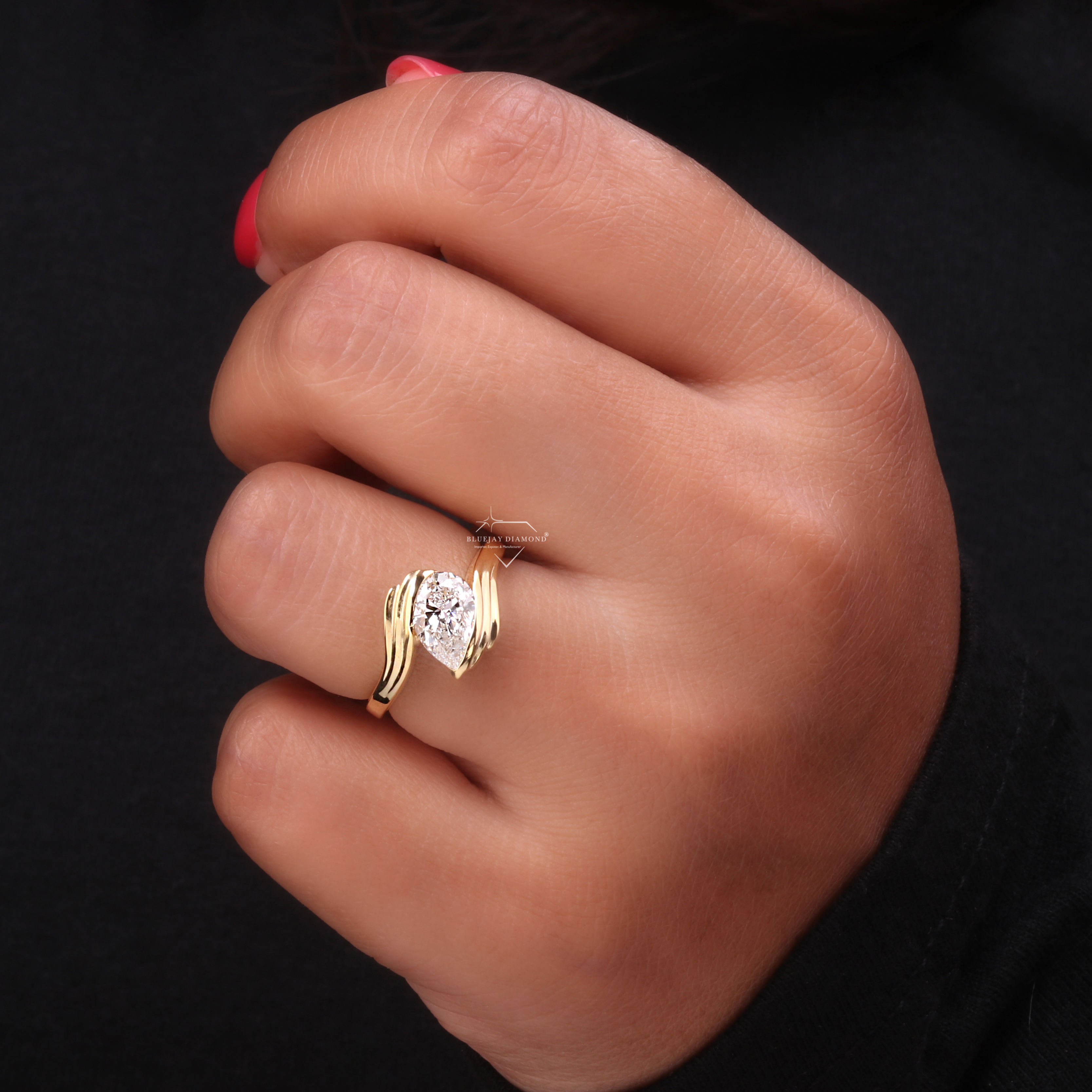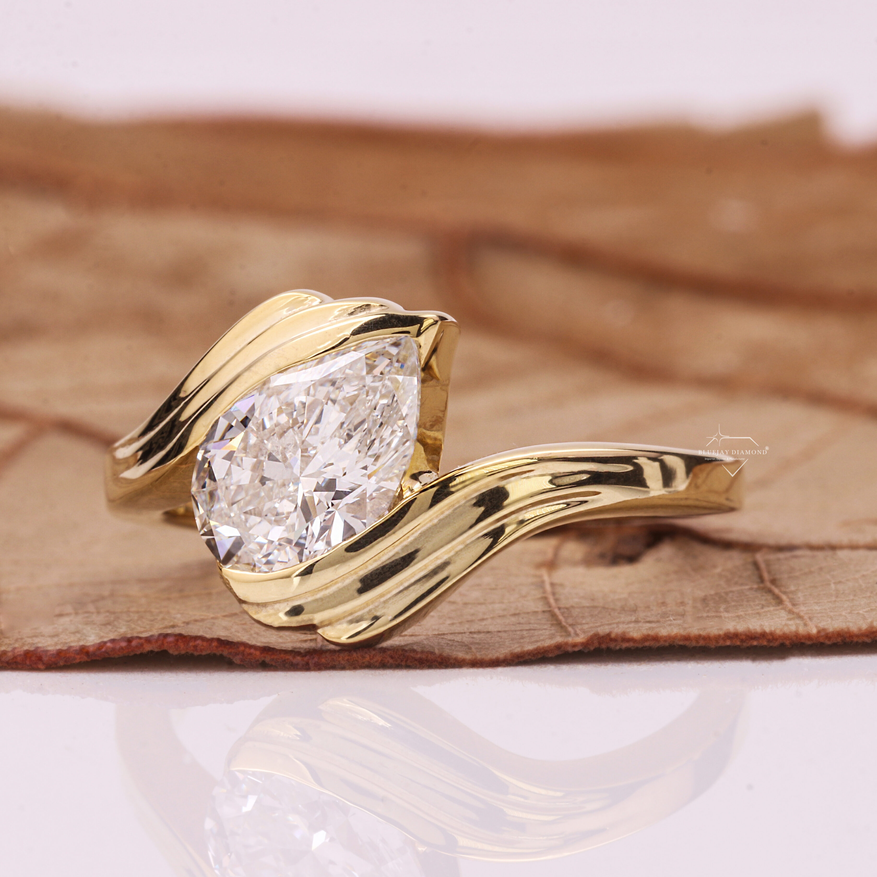 Diamond Shape: The central stone is a pear-shaped diamond.