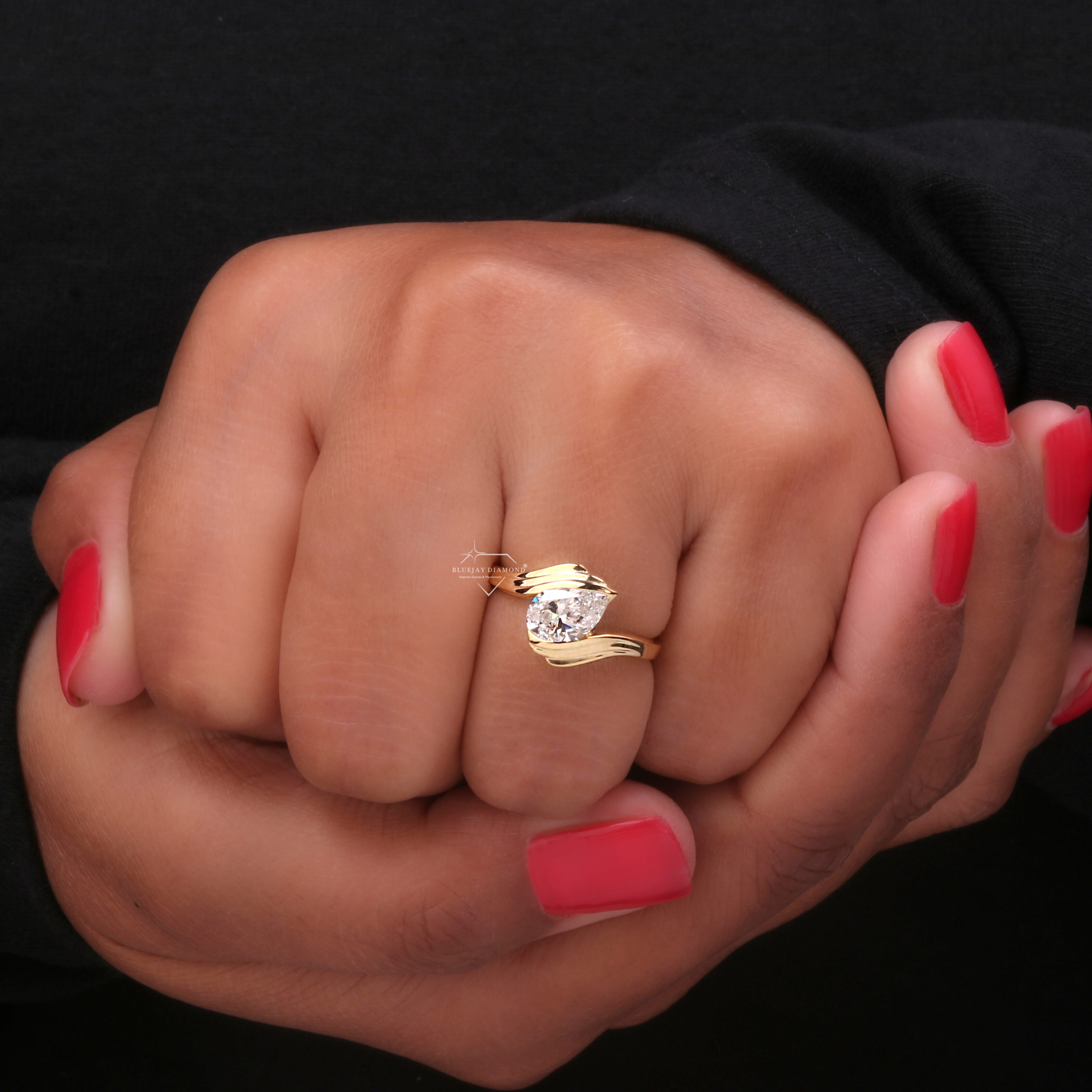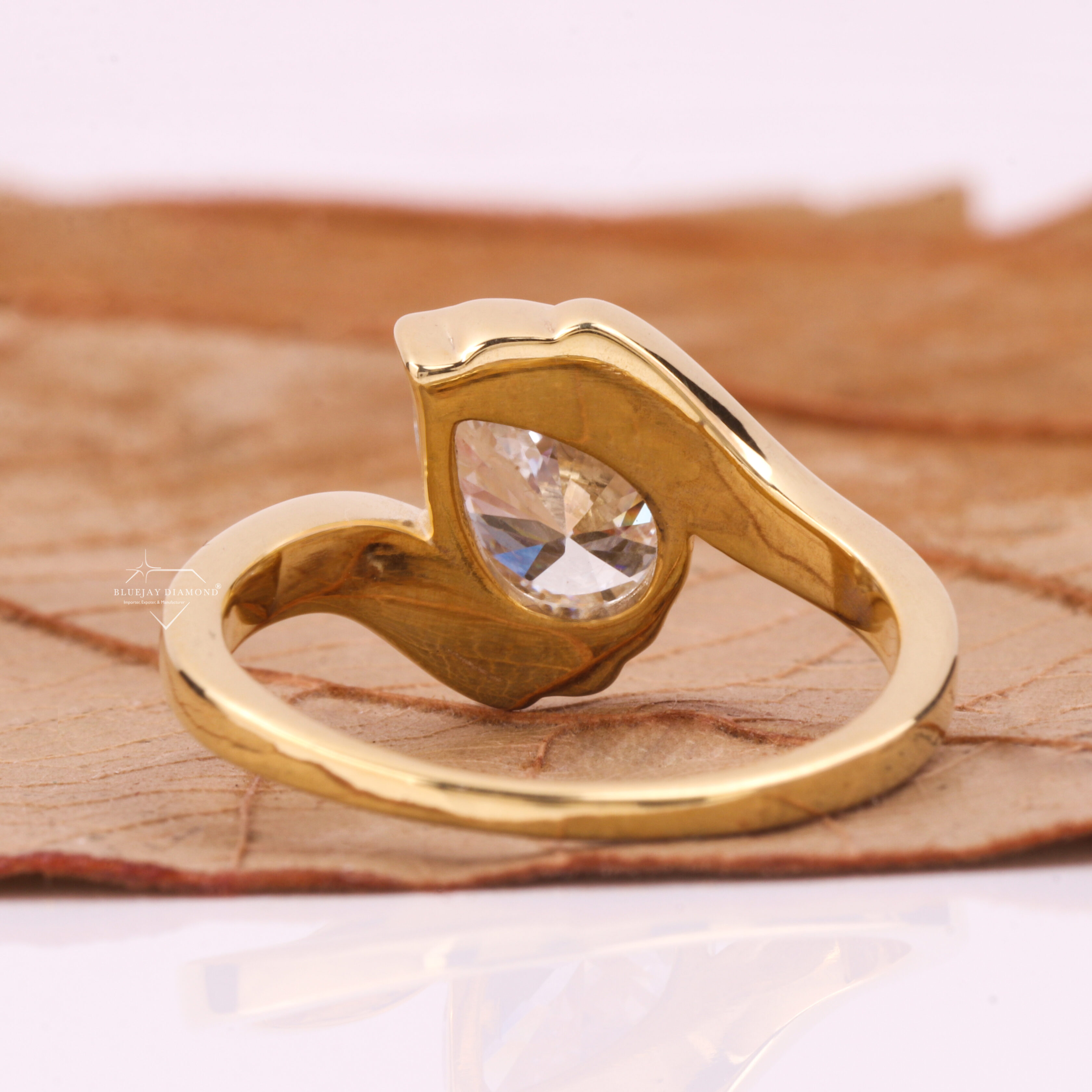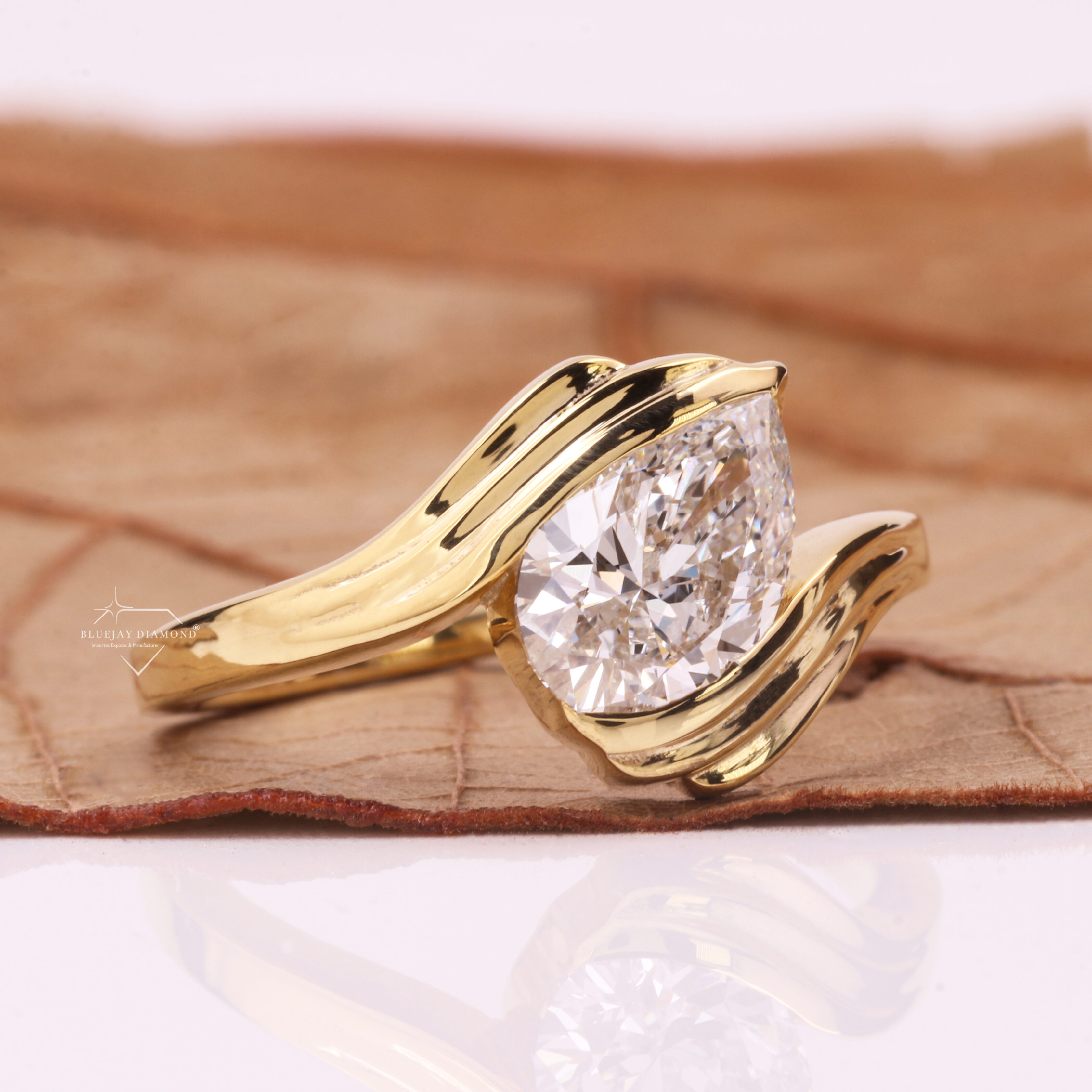 Diamond Shape: The central stone is a pear-shaped diamond.