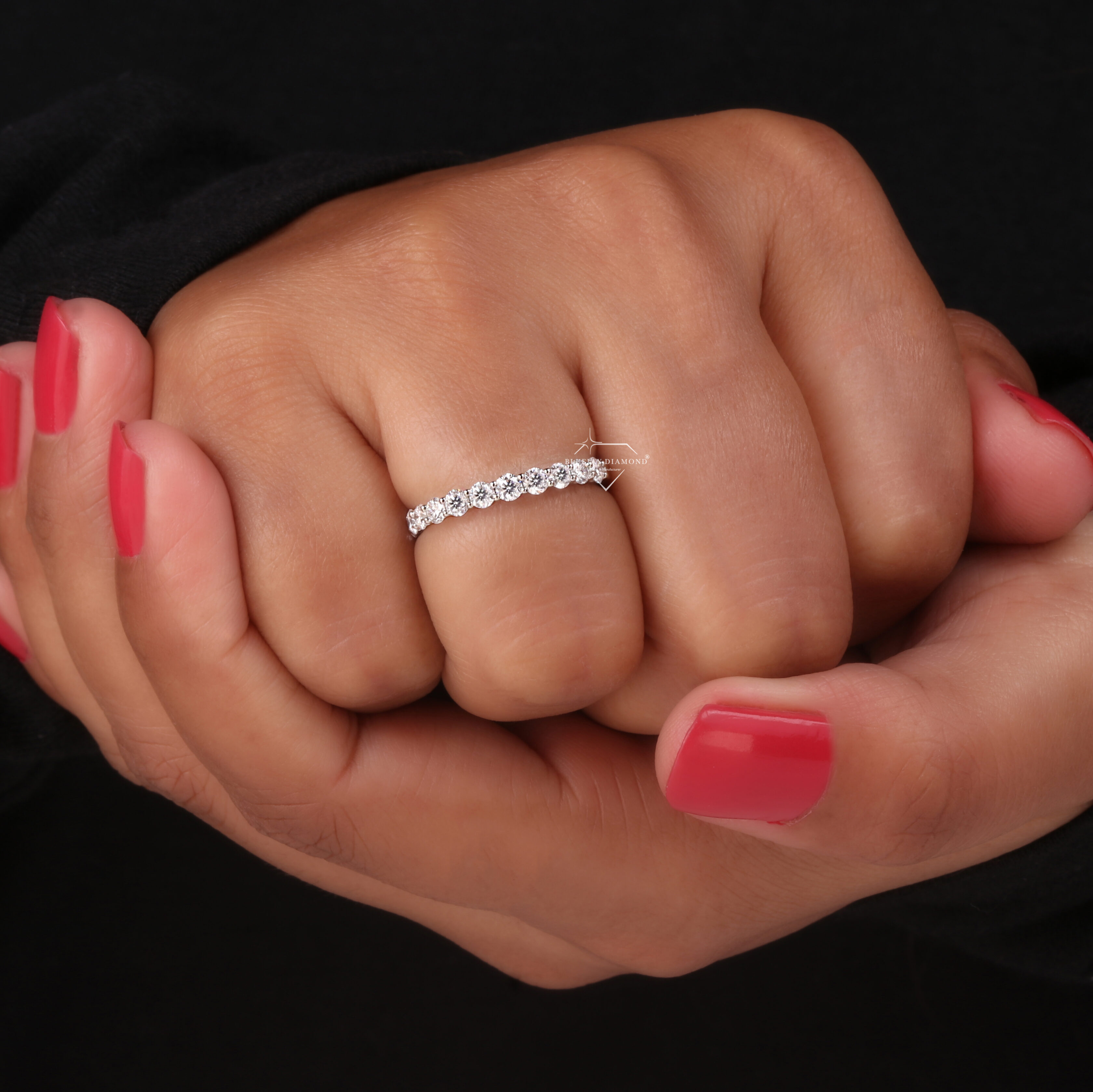 Round Brilliant Cut Lab Diamond Half Eternity Wedding Band