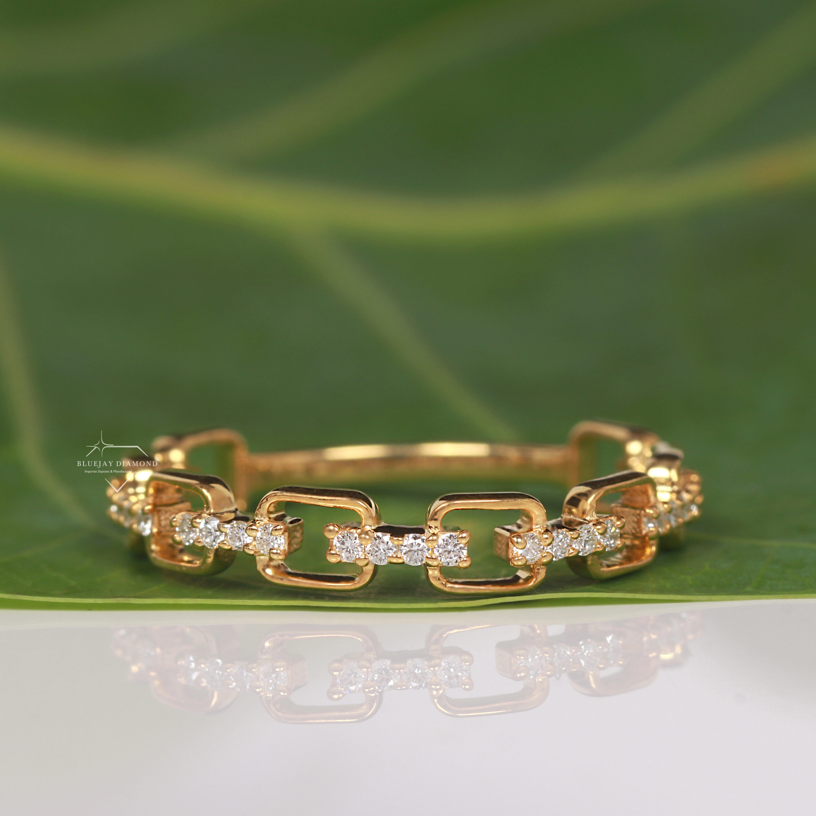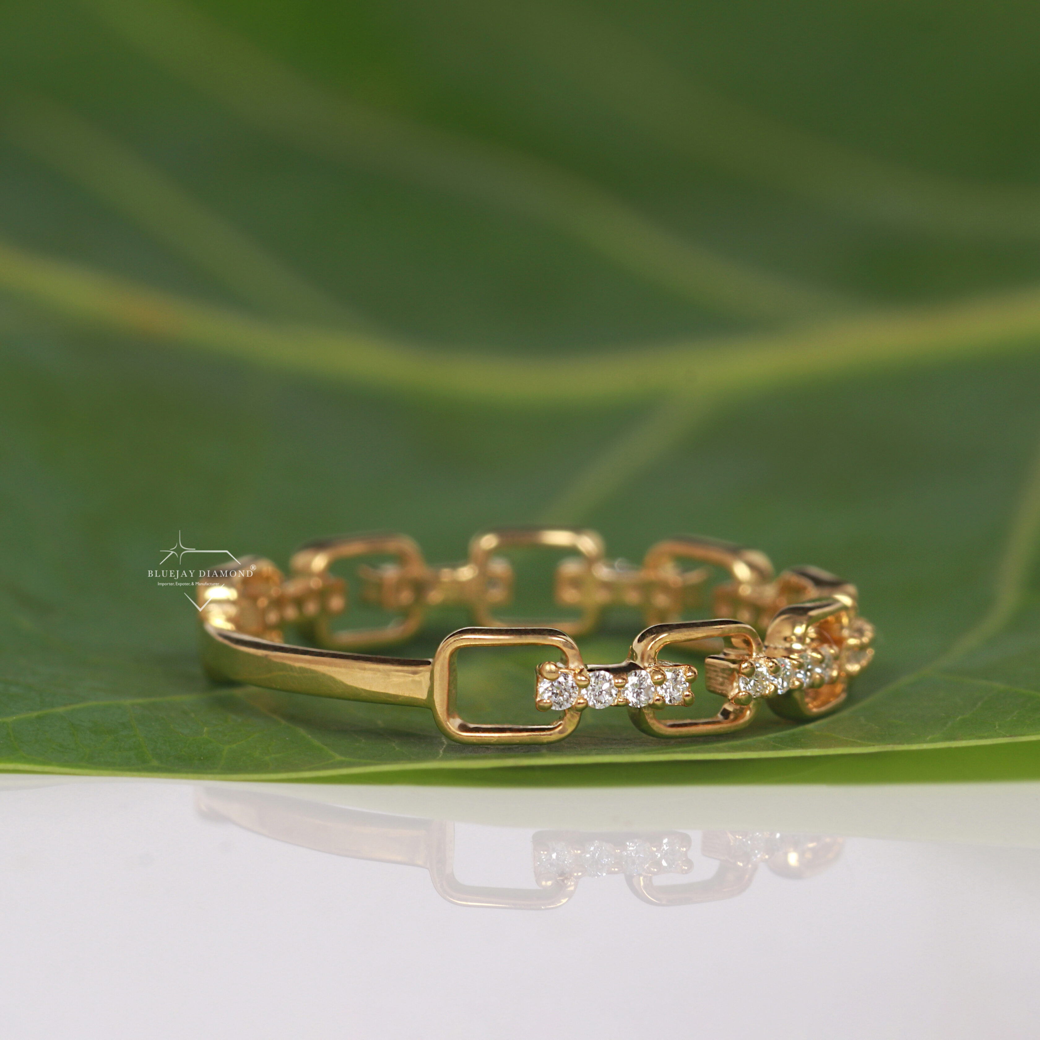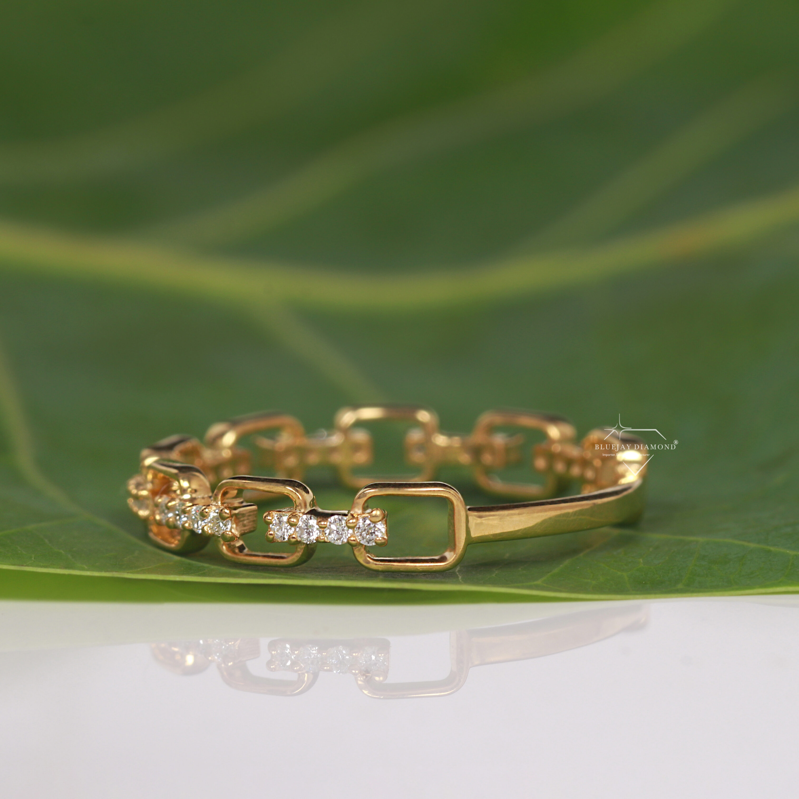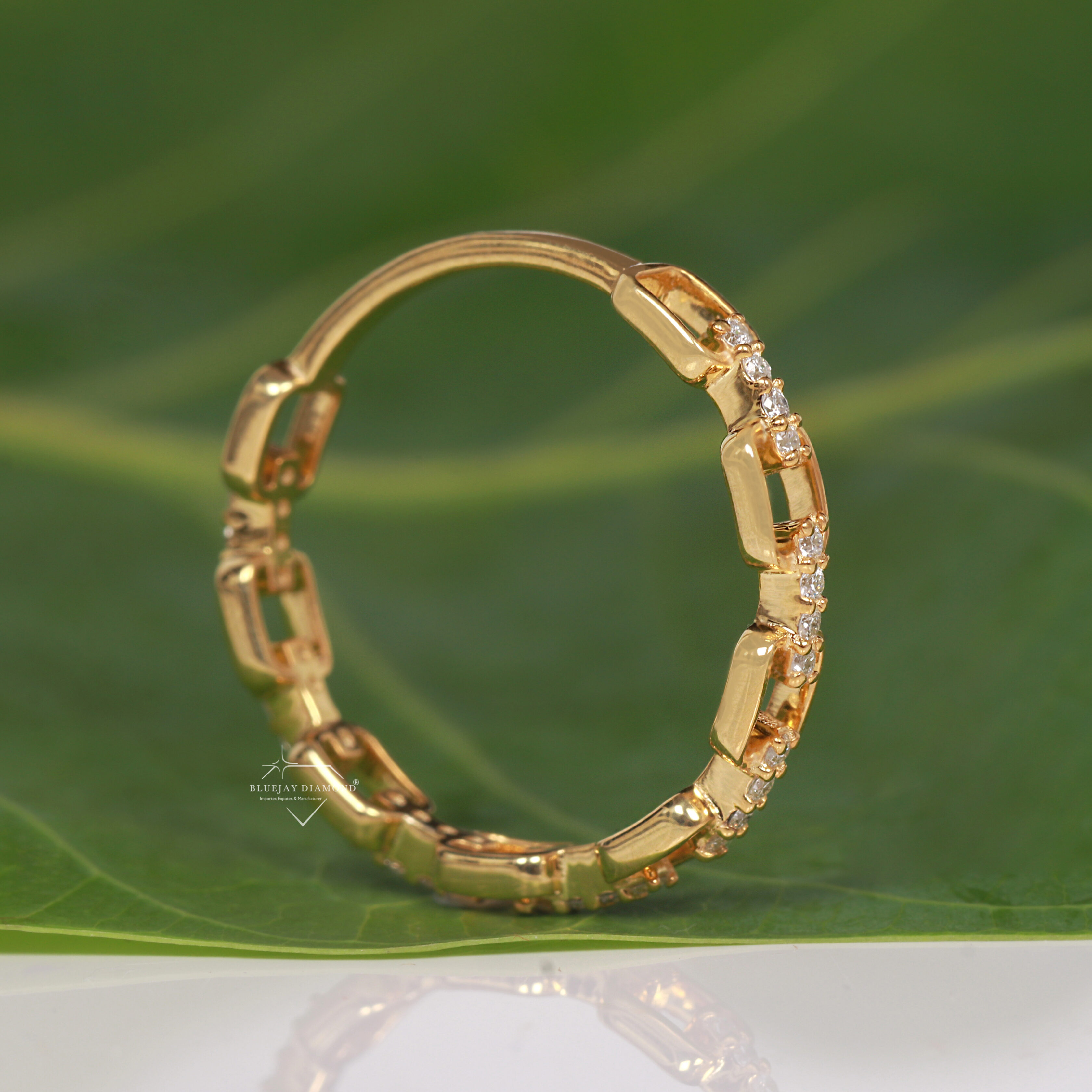 - Placement: The diamonds are strategically set along the top surface of the main, rectangular-shaped links.