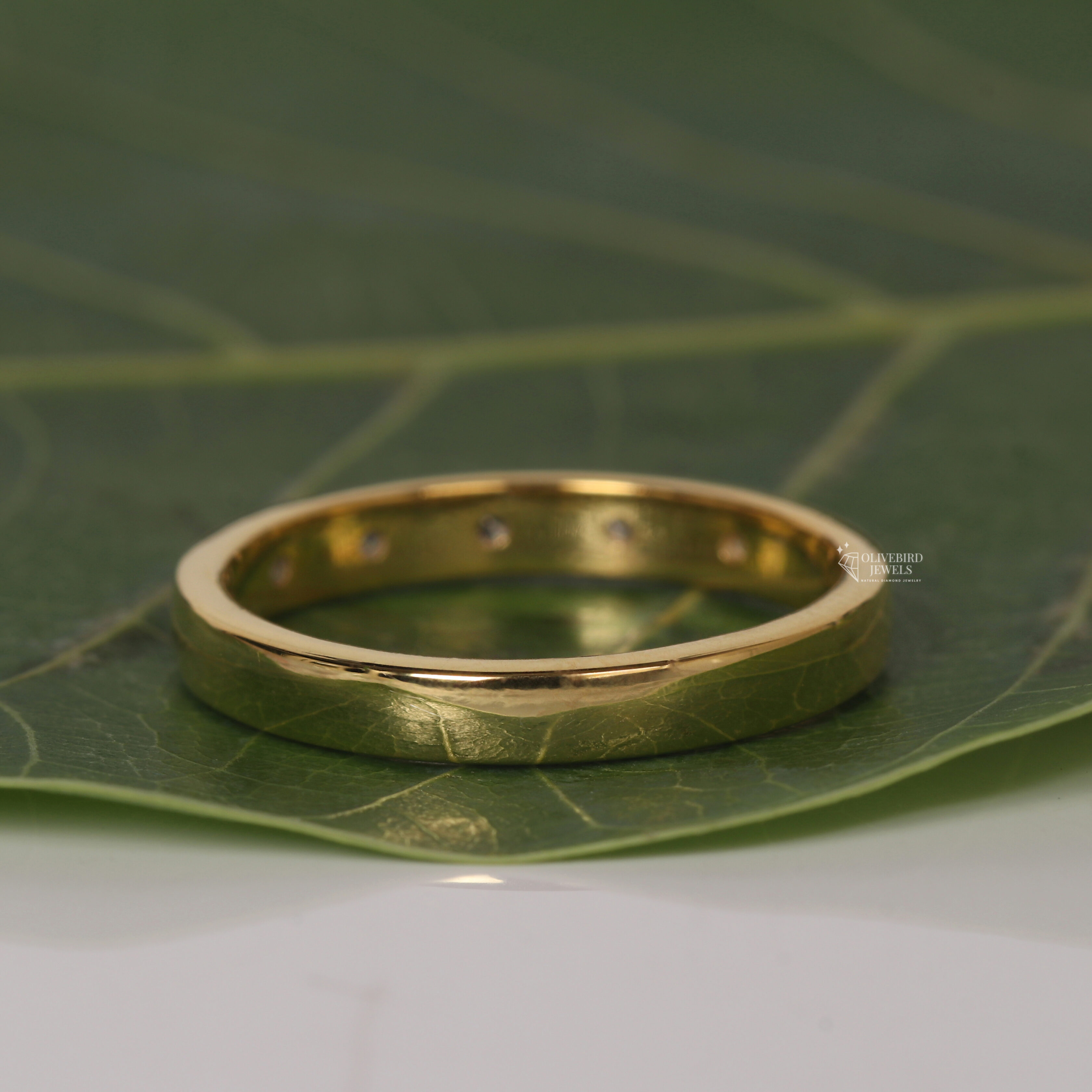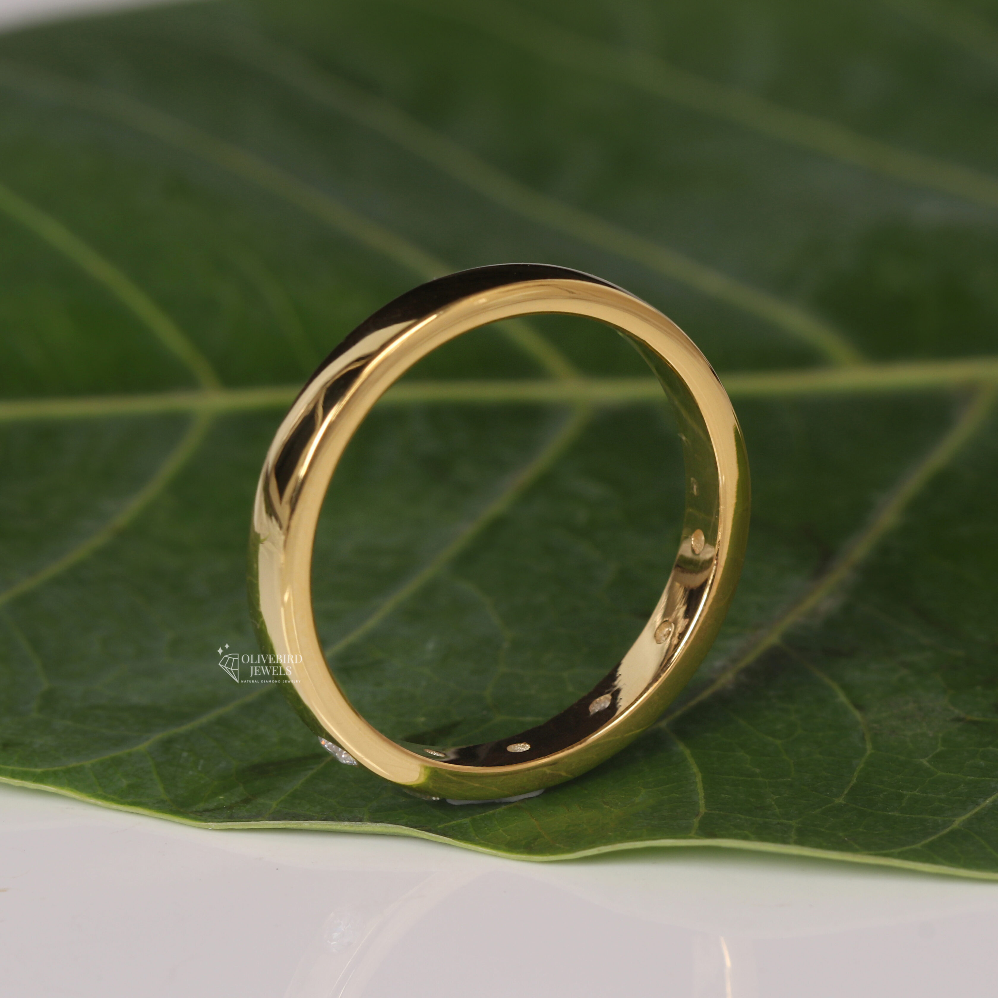 - The even diamond placement gives the ring a minimalist, modern aesthetic.